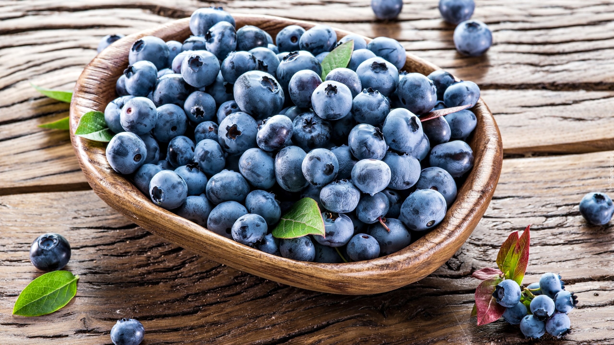 Edytor tapety: Borówki w miseczce na deskach