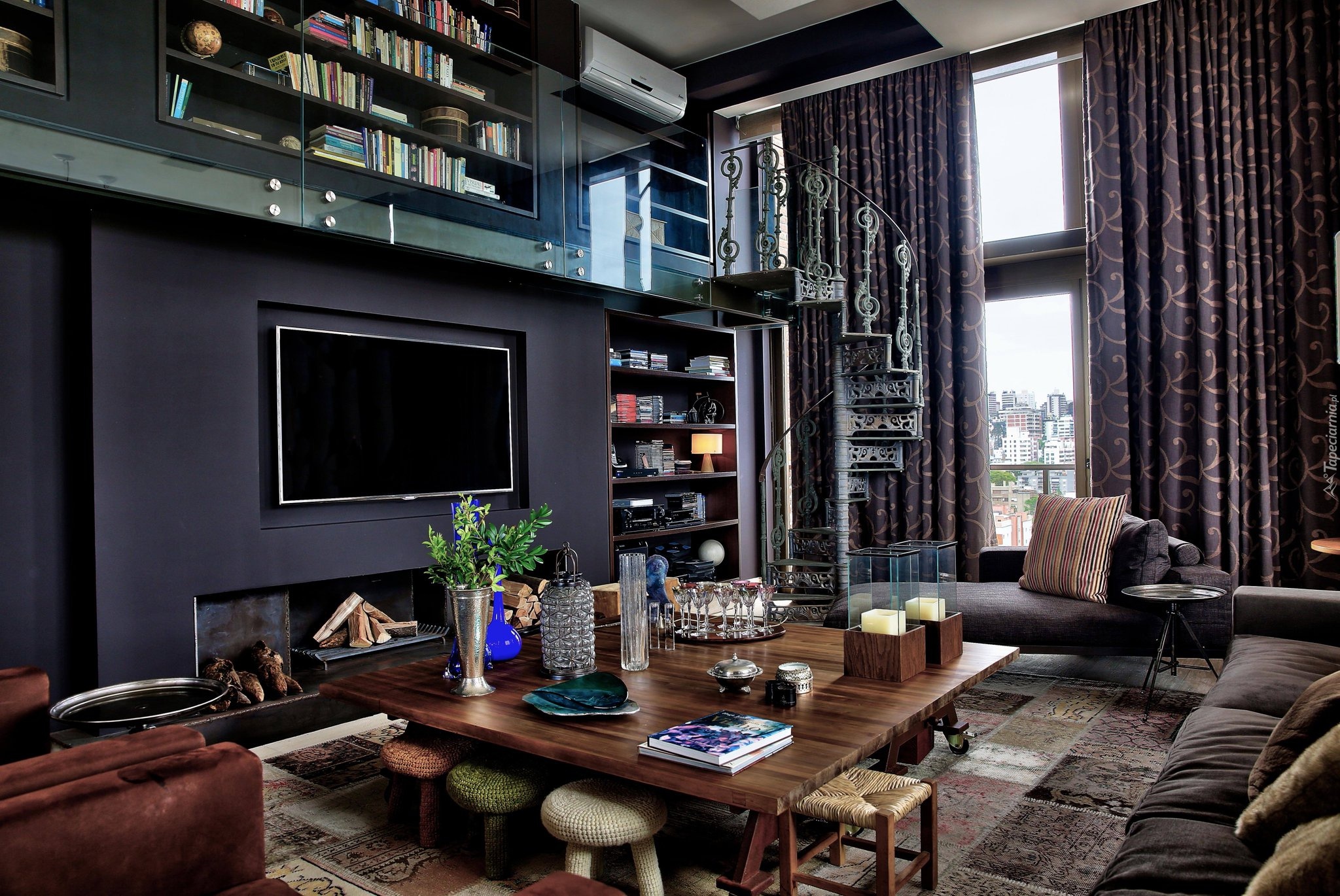 Edytor tapety: Wnętrze salonu ze schodami
