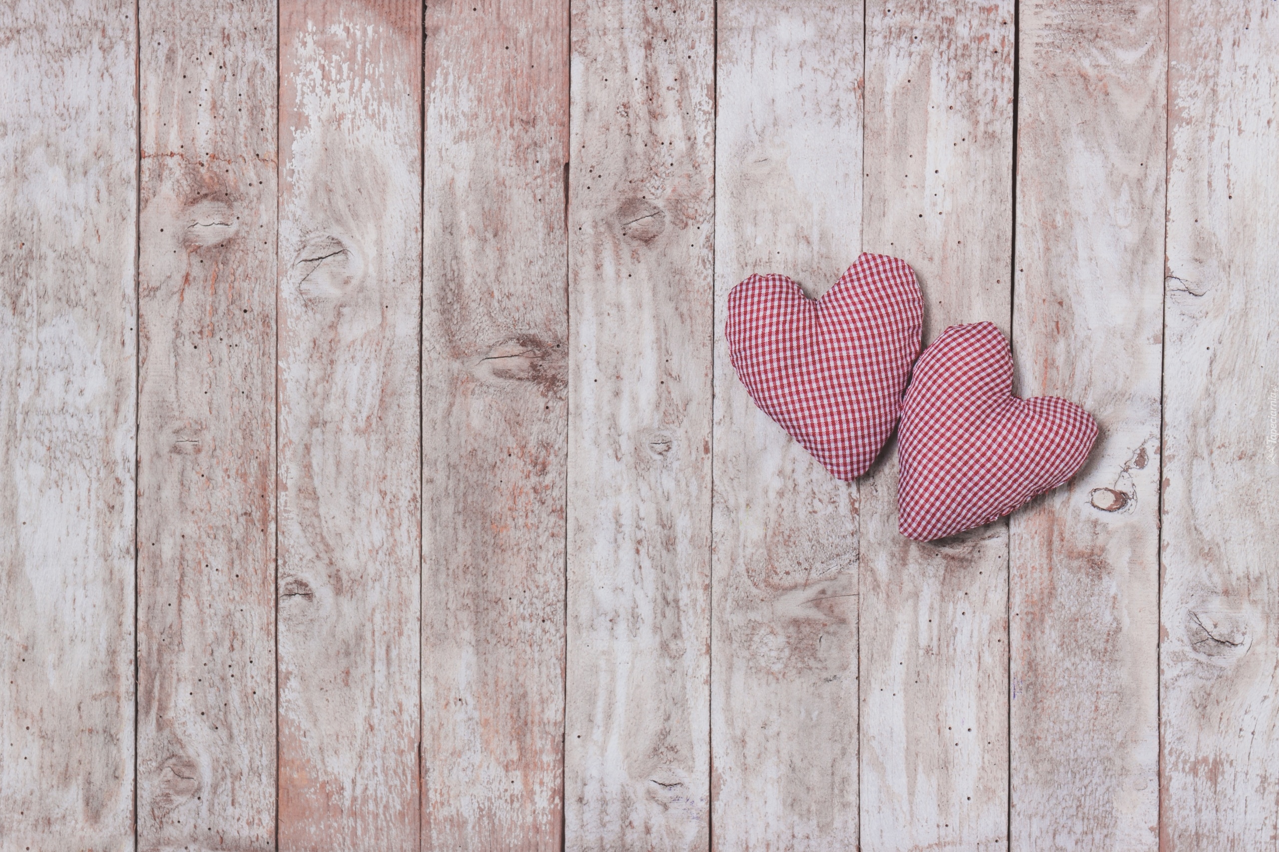 Edytor tapety: Dwa serca szmaciane na deskach