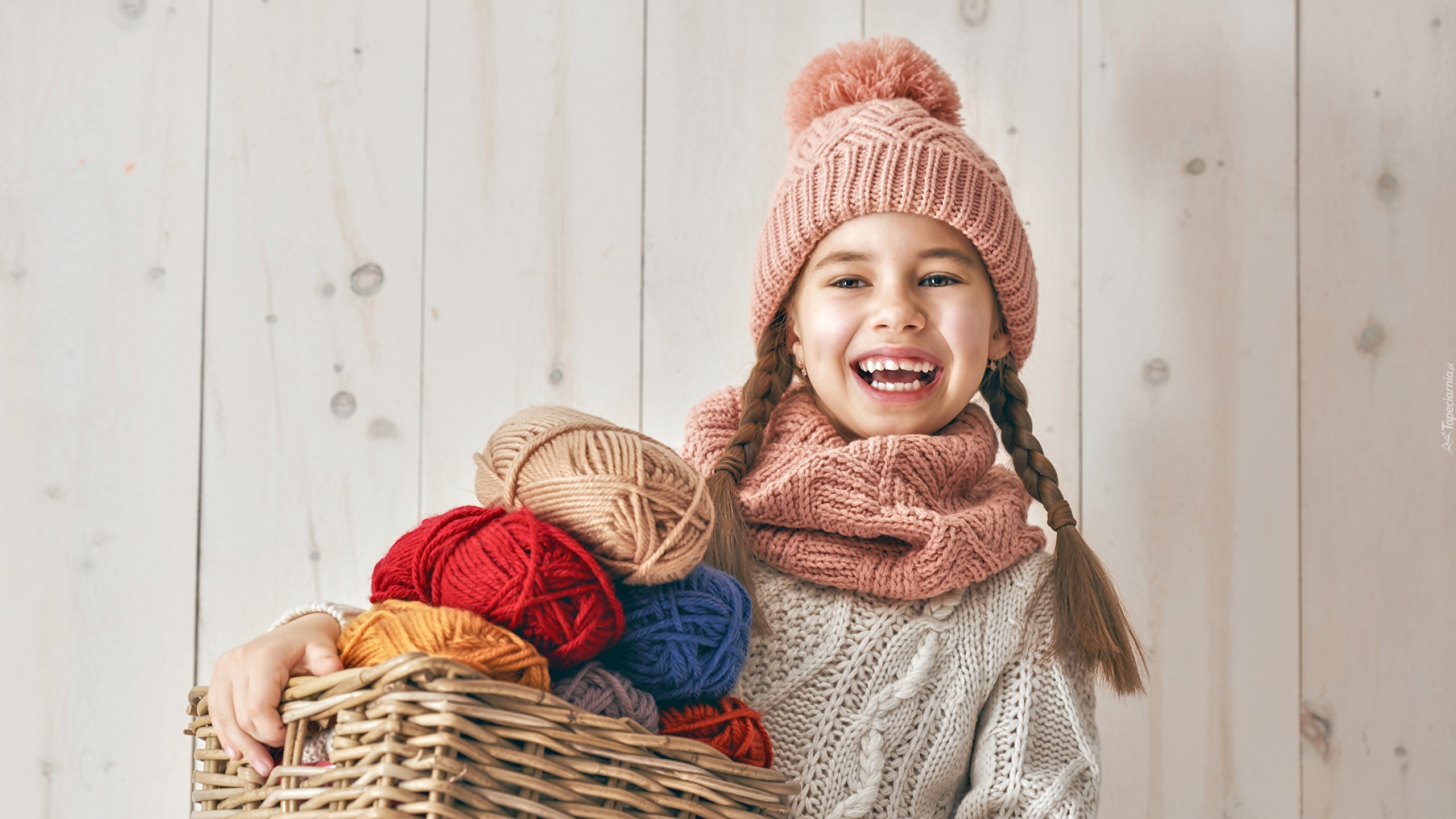Edytor tapety: Dziewczynka z motkami włóczek w koszyku