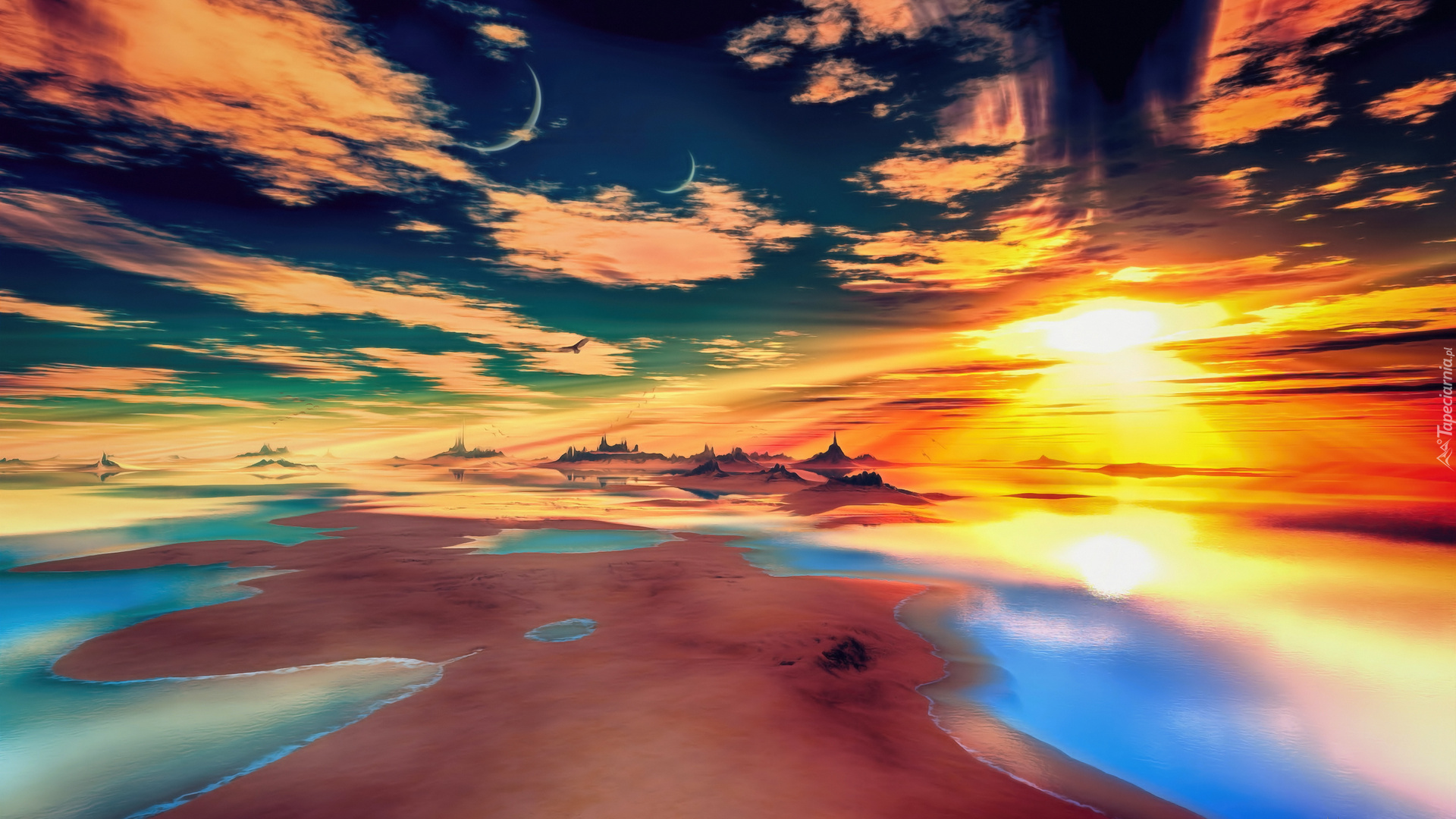 Edytor tapety: Kolorowe niebo nad morzem