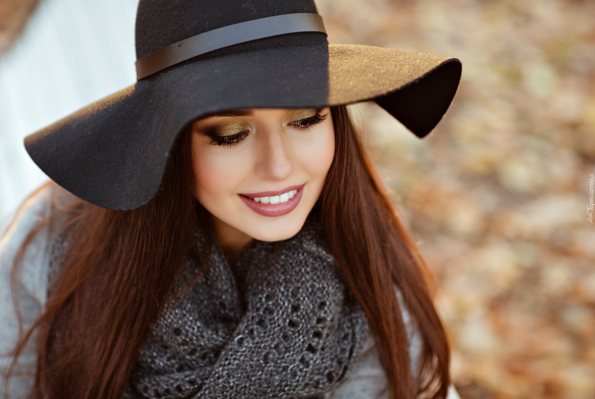 Edytor tapety: Uśmiechnięta kobieta w kapeluszu