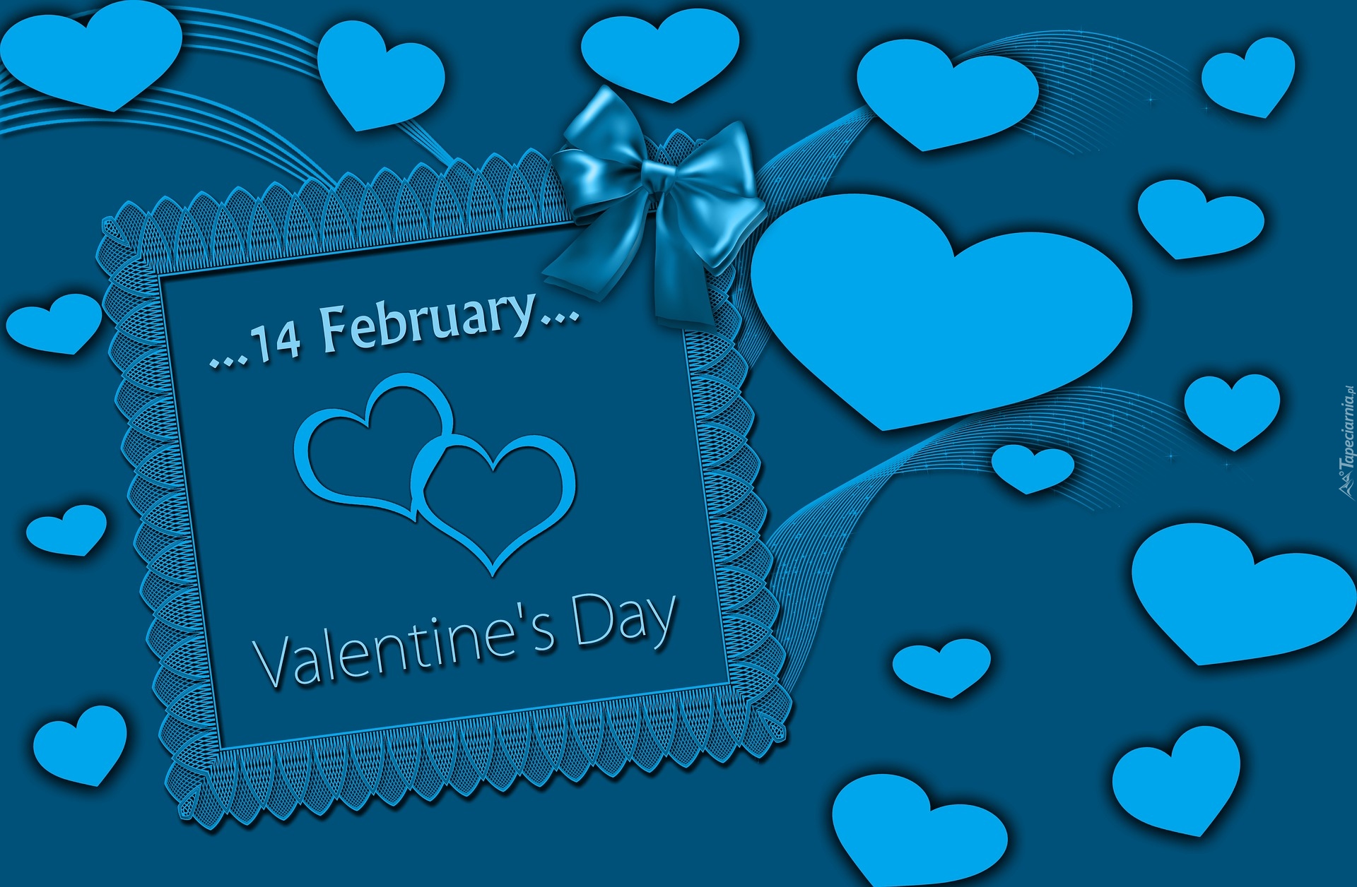 Edytor tapety: Walentynkowy napis i niebieskie serduszka