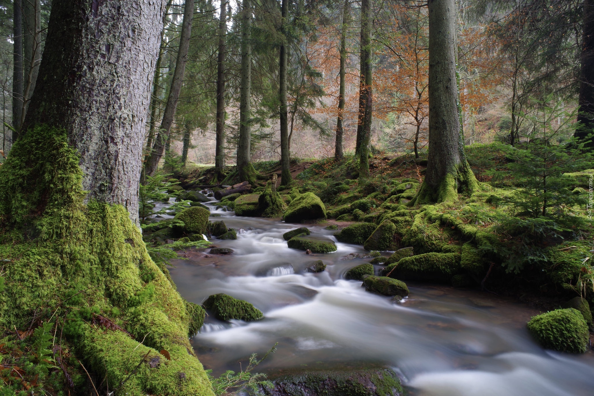 Edytor tapety: Kamienisty potok w jesiennym lesie