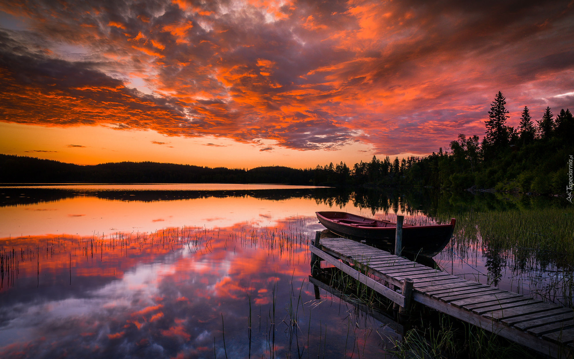Edytor tapety: Łódka przy pomoście na jeziorze w Trondheim