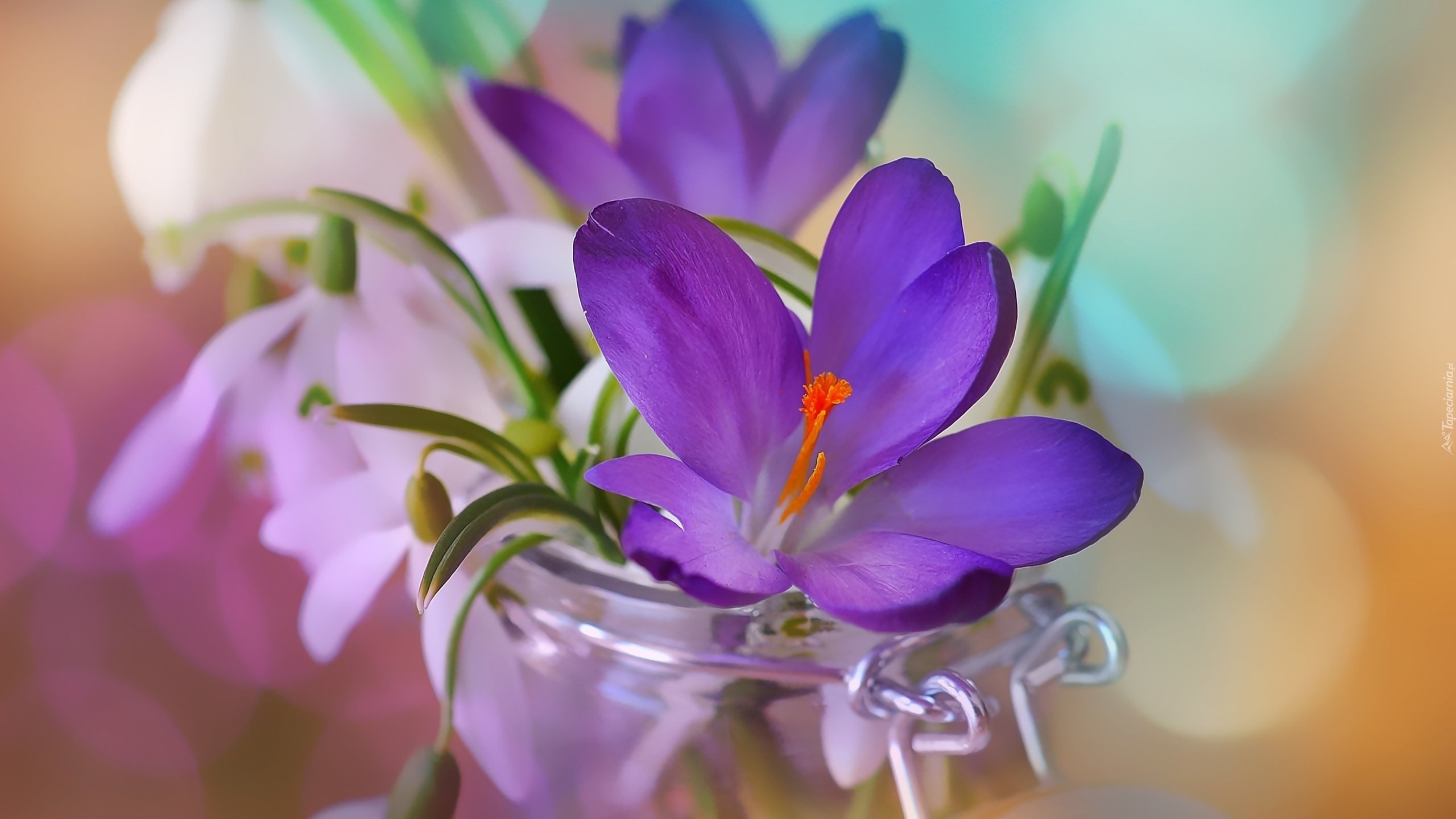 Edytor tapety: Krokusy i przebiśniegi w słoiczku