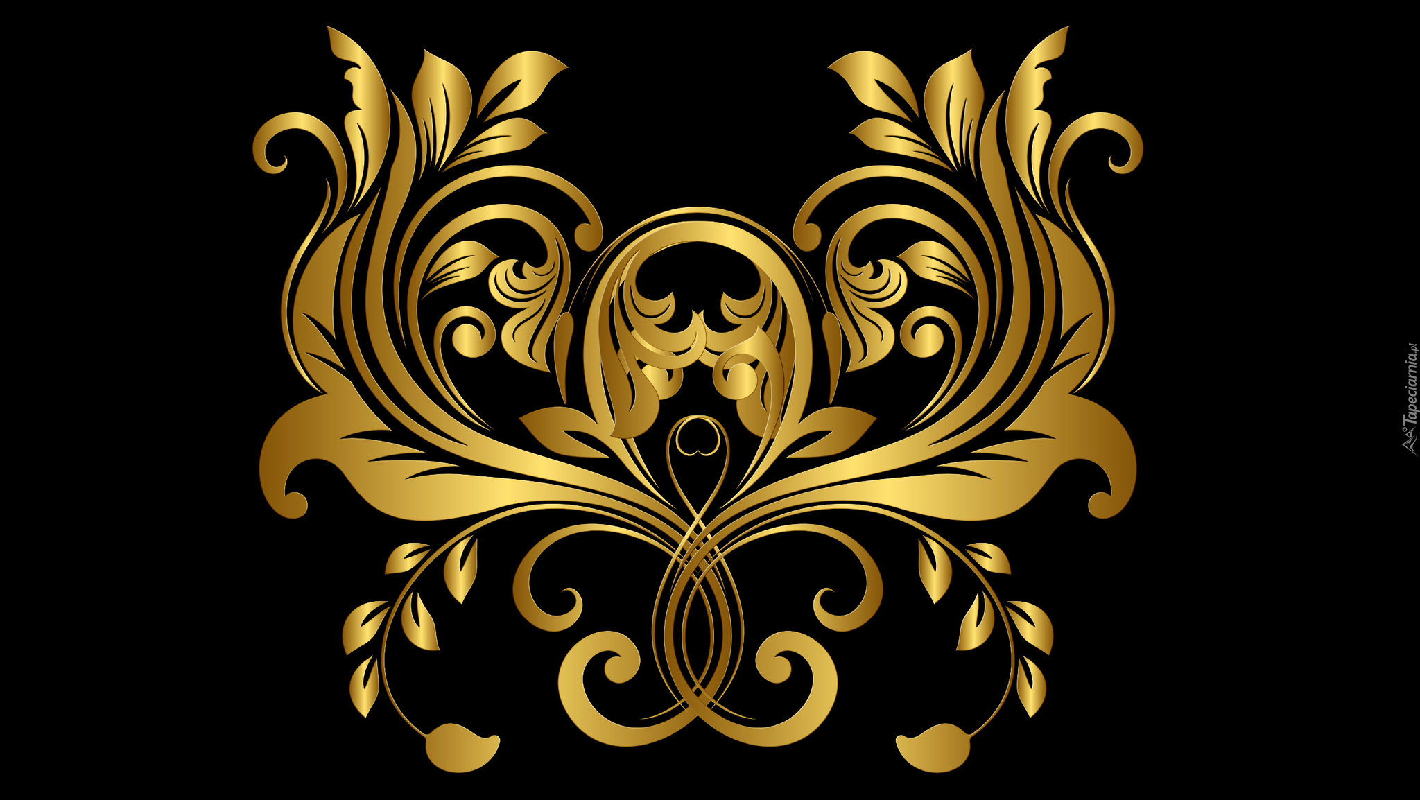 Edytor tapety: Złoty ornament na czarnym tle w 2D