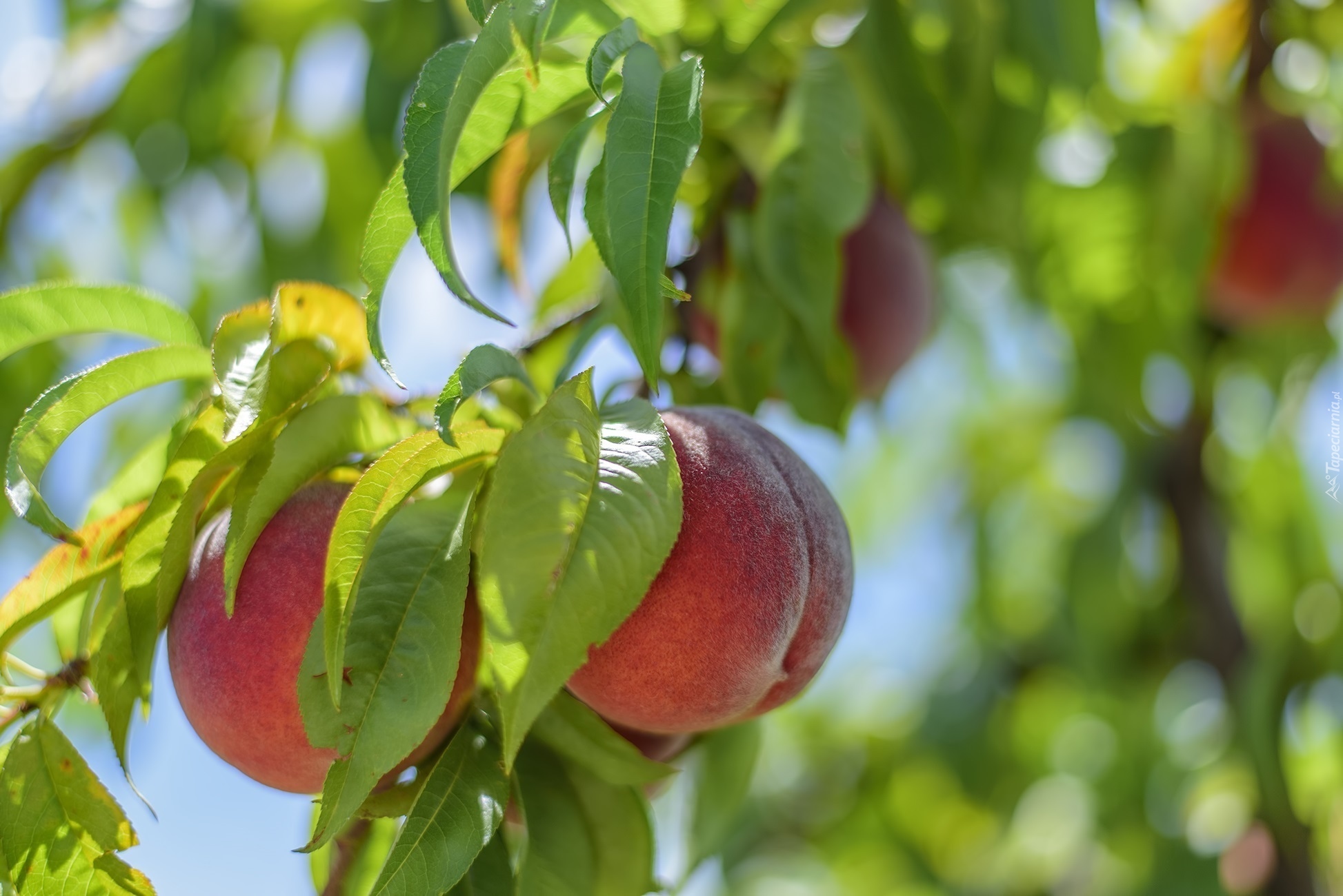 Edytor tapety: Brzoskwinie na gałęzi w słońcu