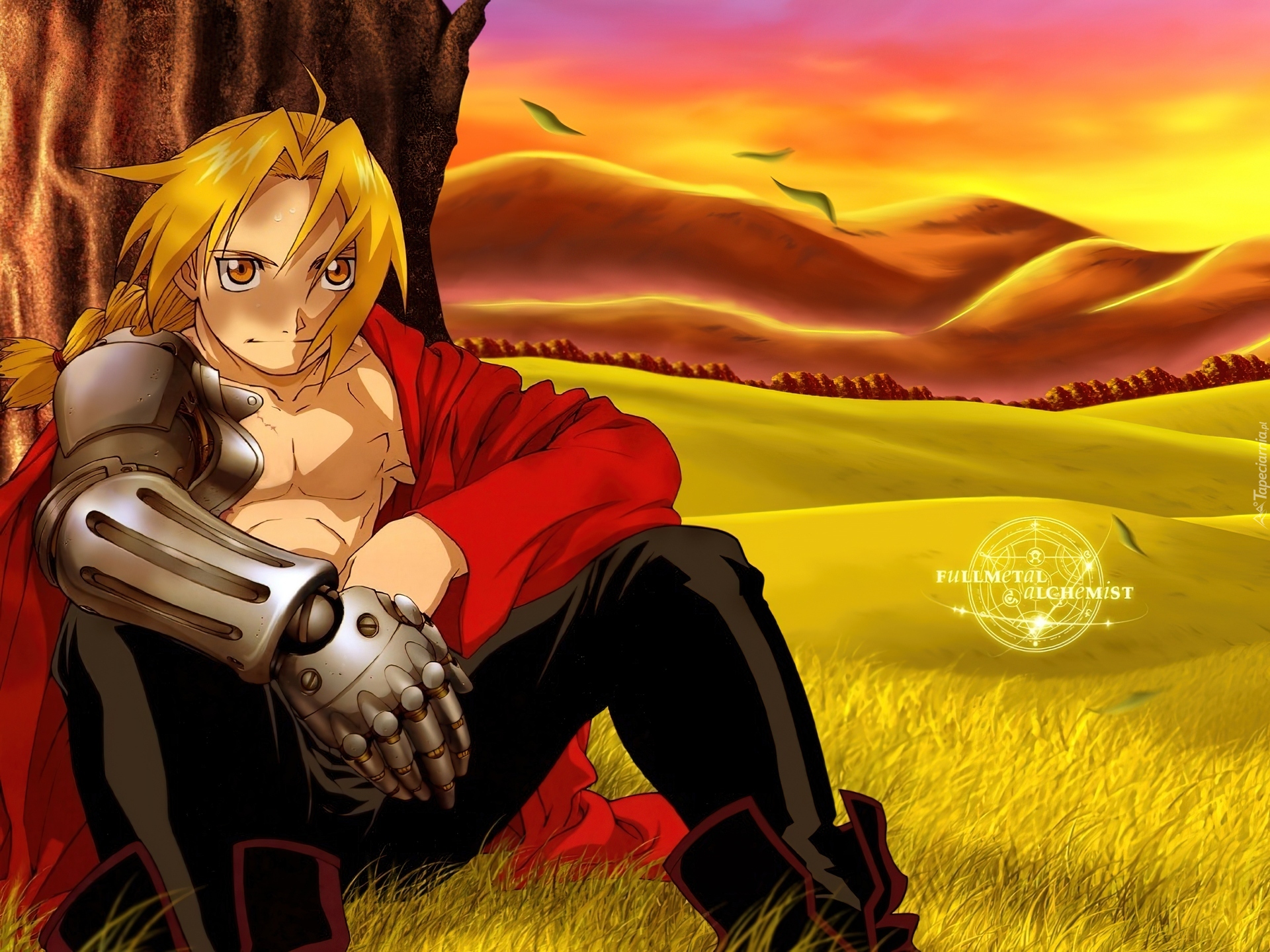 Edytor tapety: ptaki, Full Metal Alchemist, postać, drzewo, ręka, polana