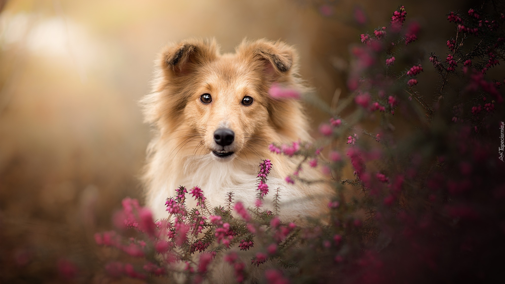 Edytor tapety: Owczarek szetlandzki i wrzosy