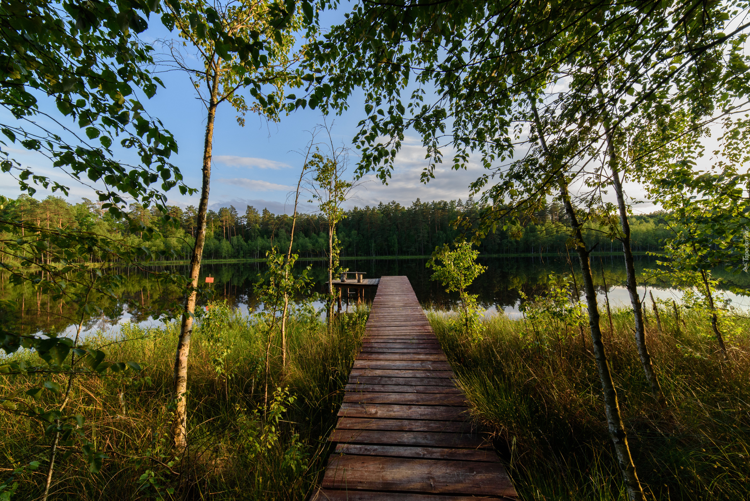 Edytor tapety: Pomost na mazurskim leśnym jeziorku