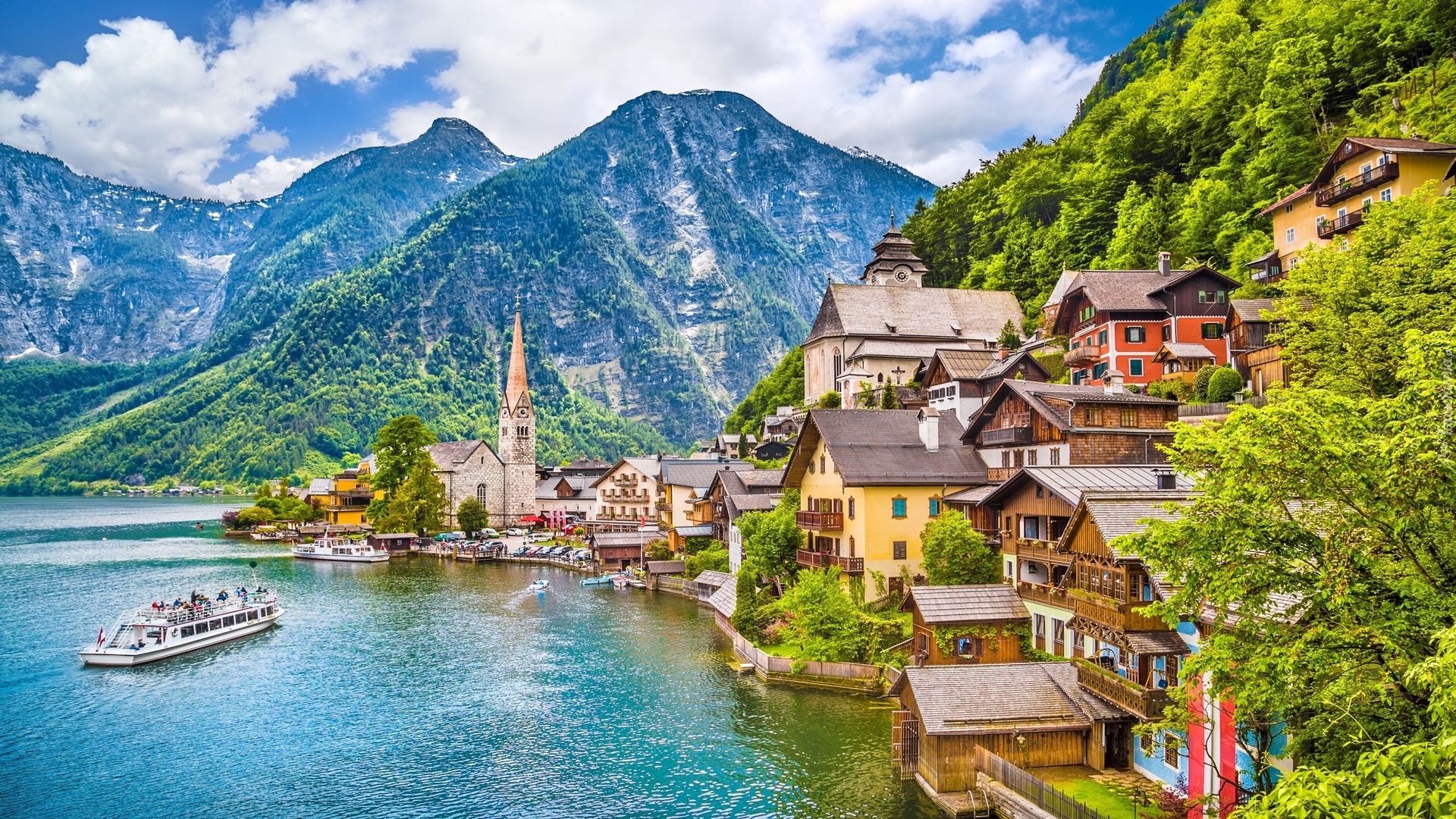 Edytor tapety: Domy nad jeziorem w miasteczku Hallstatt