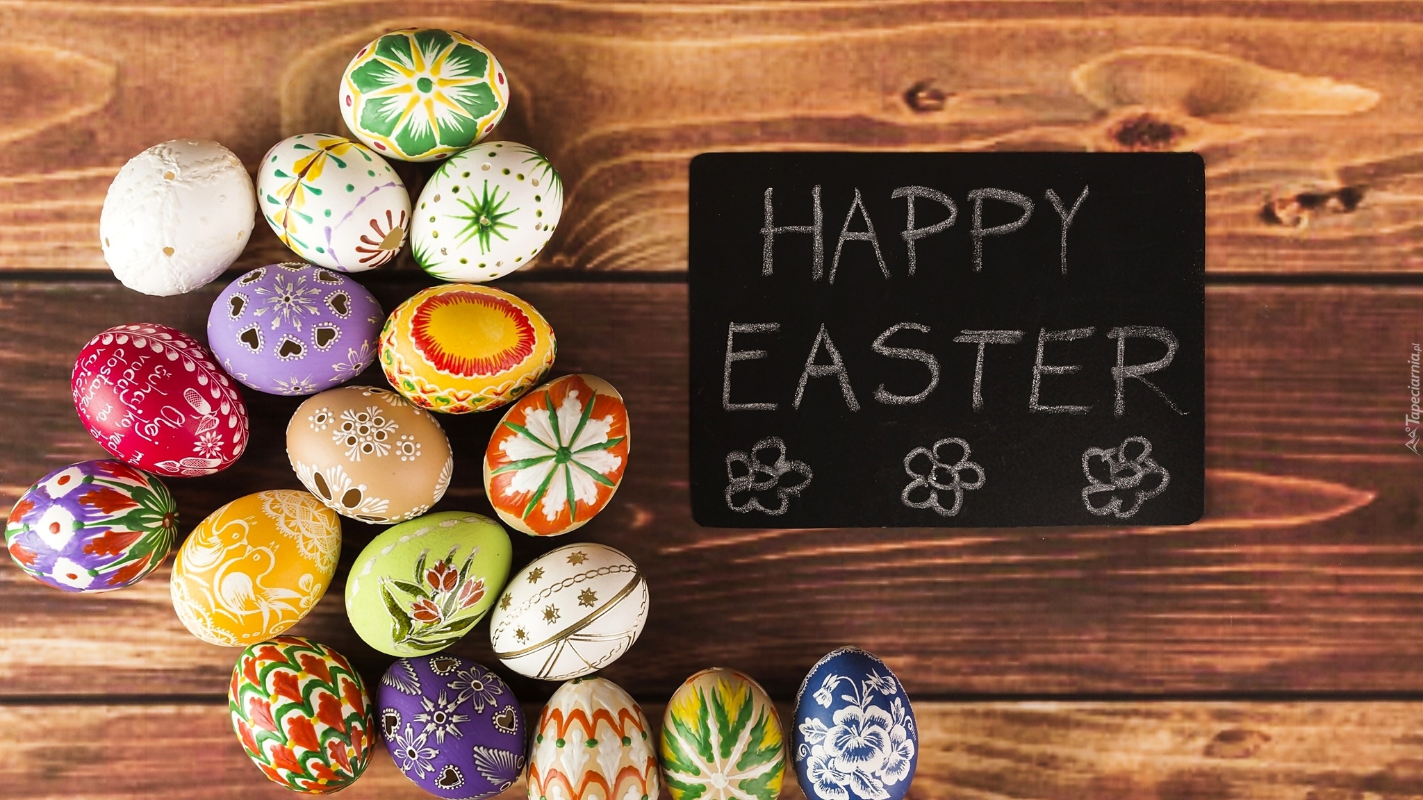 Edytor tapety: Pisanki i życzenia wielkanocne na deskach