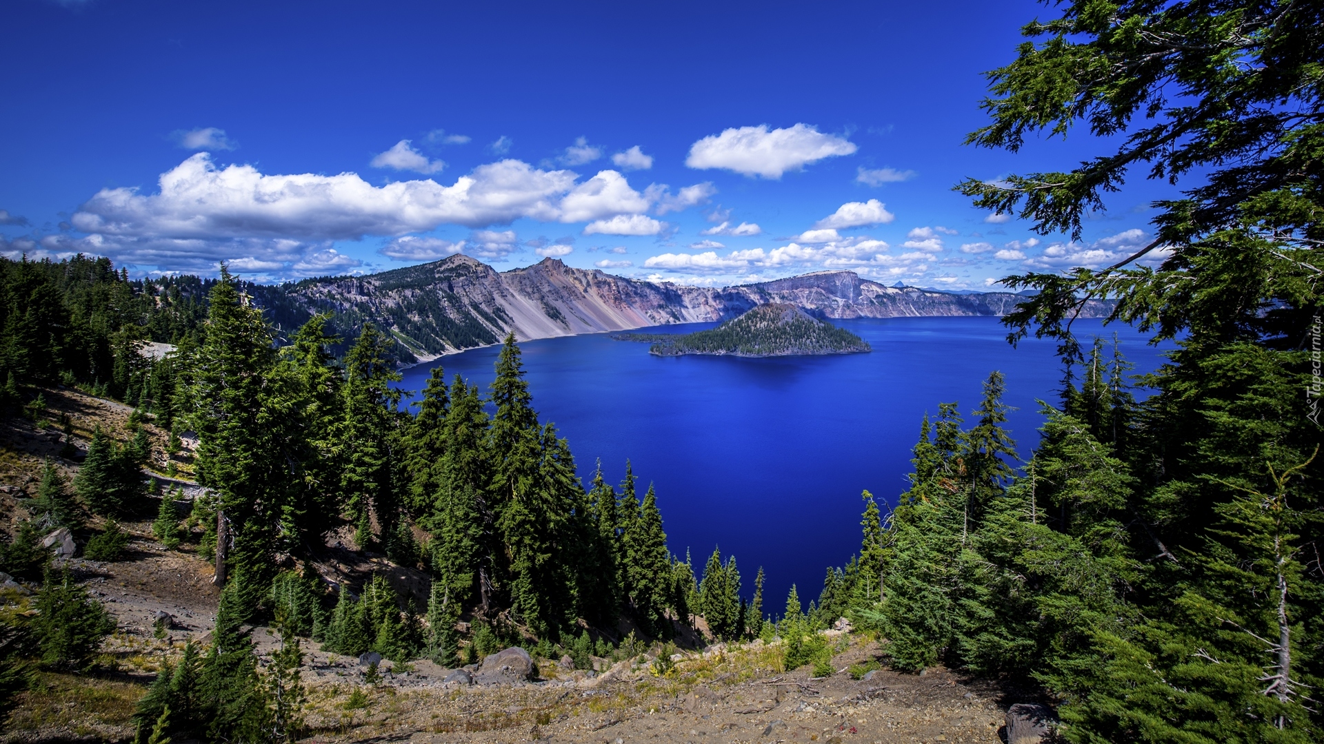 Edytor tapety: Jezioro Kraterowe z wyspą Czarodzieja