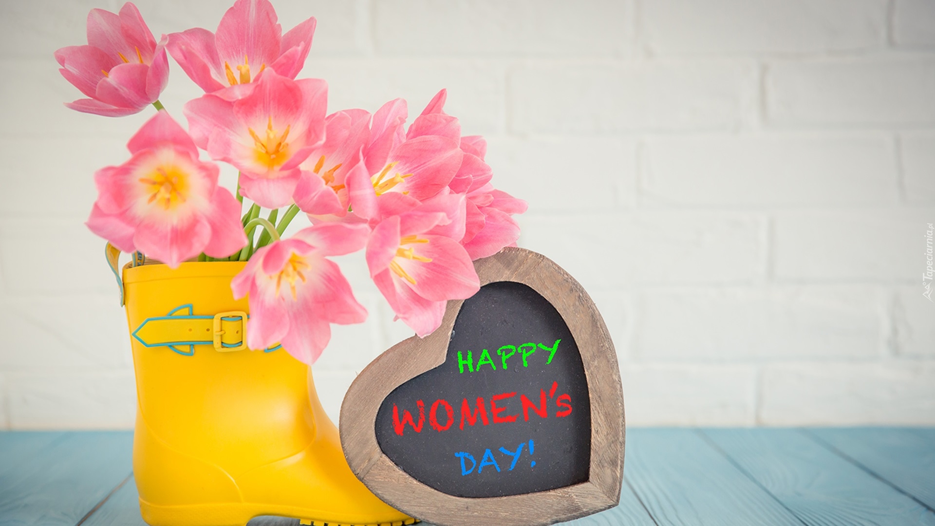 Edytor tapety: Tulipany i serce z życzeniami na Dzień Kobiet