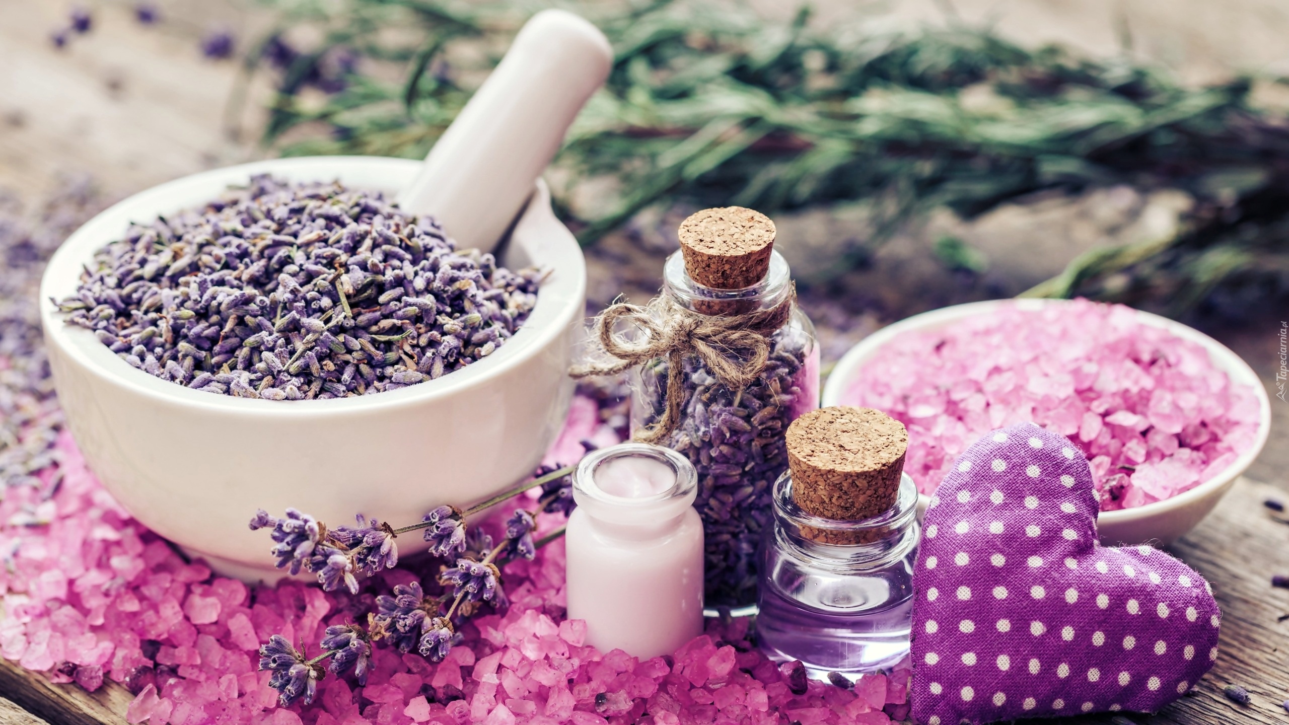 Edytor tapety: Serduszko obok lawendy i olejku w SPA