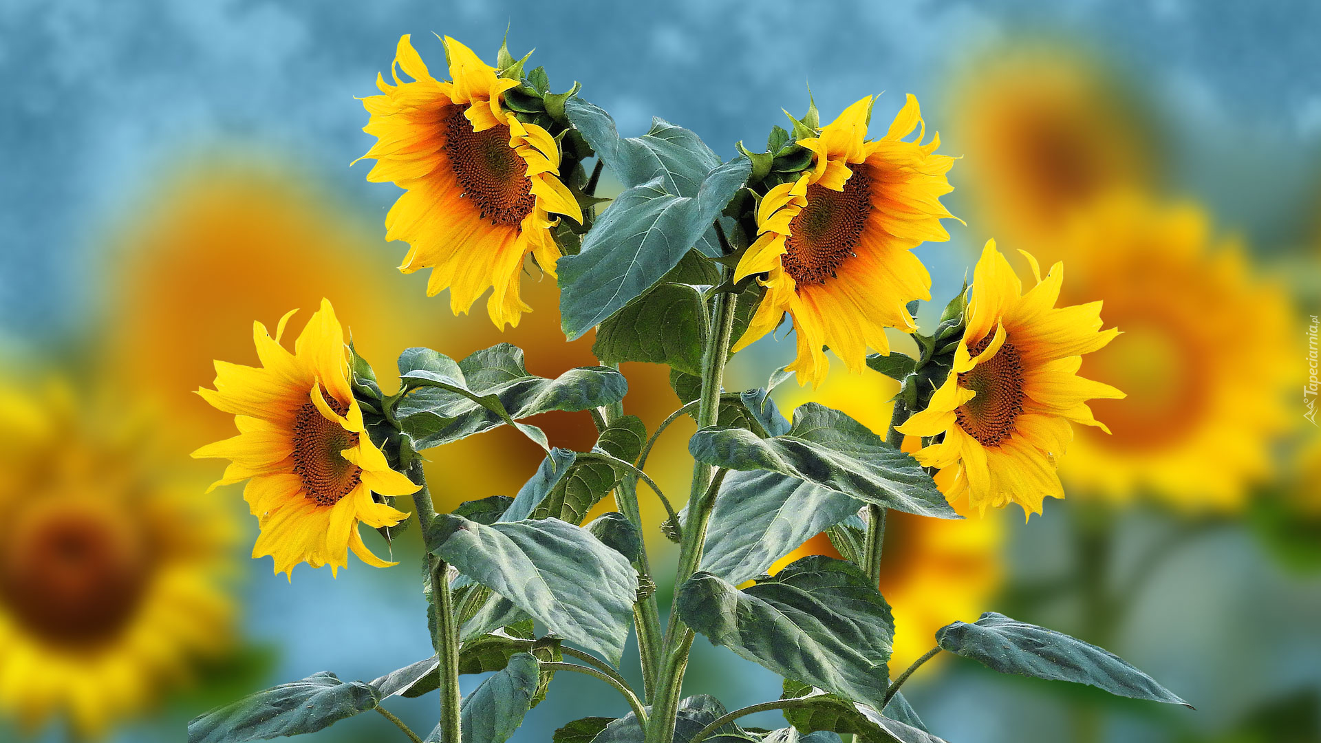 Edytor tapety: Kilka słoneczników