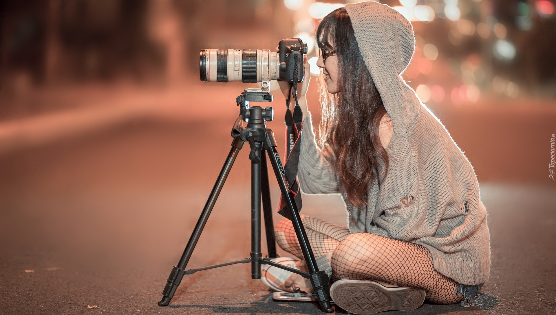 Edytor tapety: Dziewczyna z aparatem fotograficznym