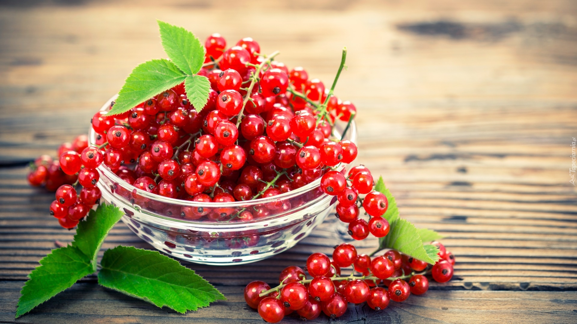 Edytor tapety: Czerwone porzeczki w szklanej miseczce