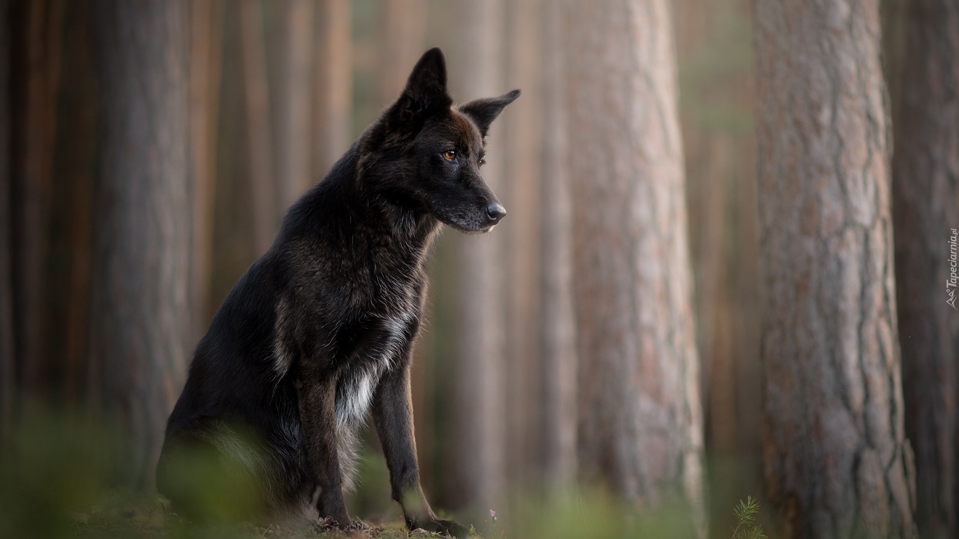 Edytor tapety: Siedzący przy drzewie pies