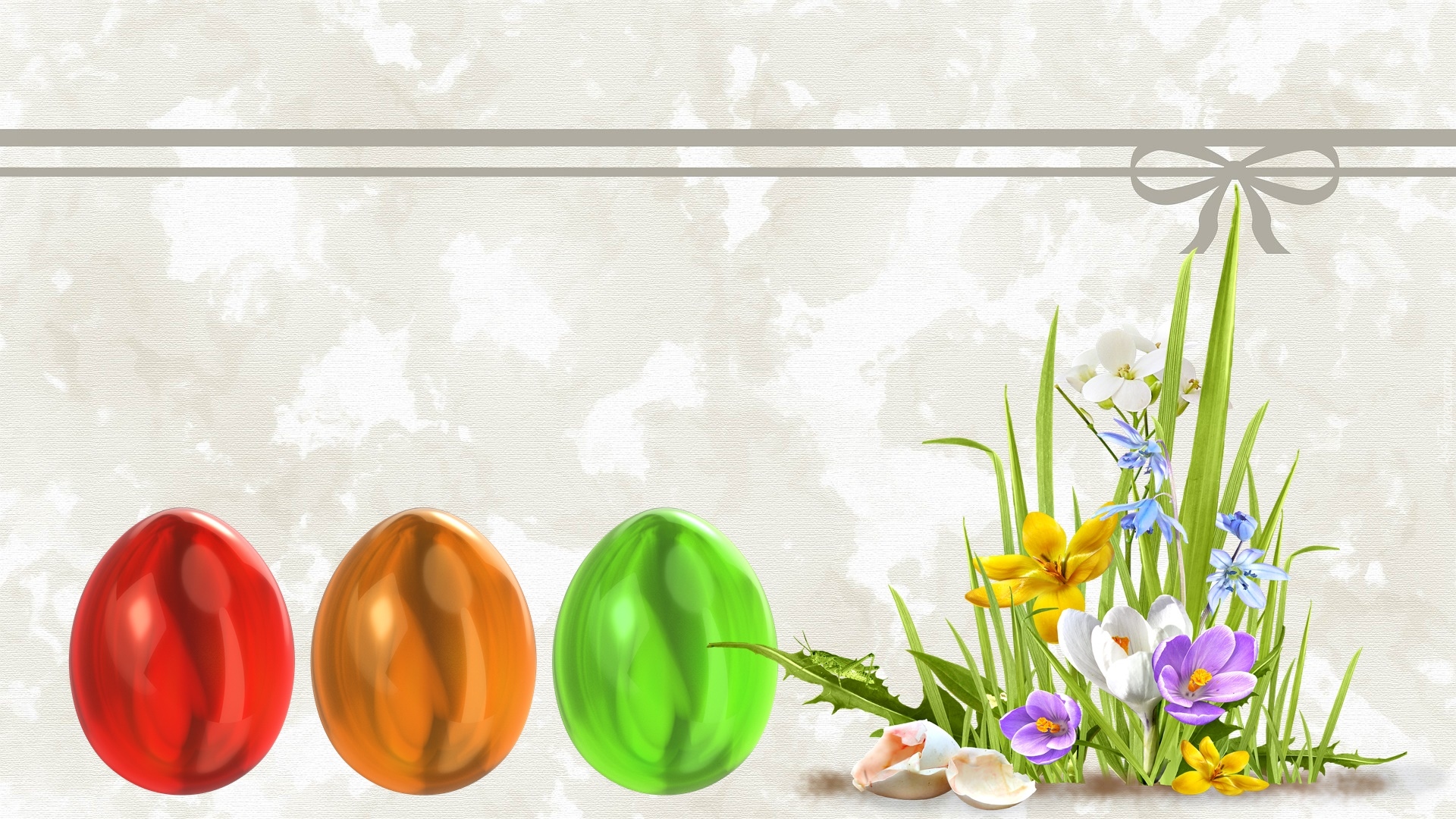 Edytor tapety: Kartka wielkanocna z pisankami i kwiatkami
