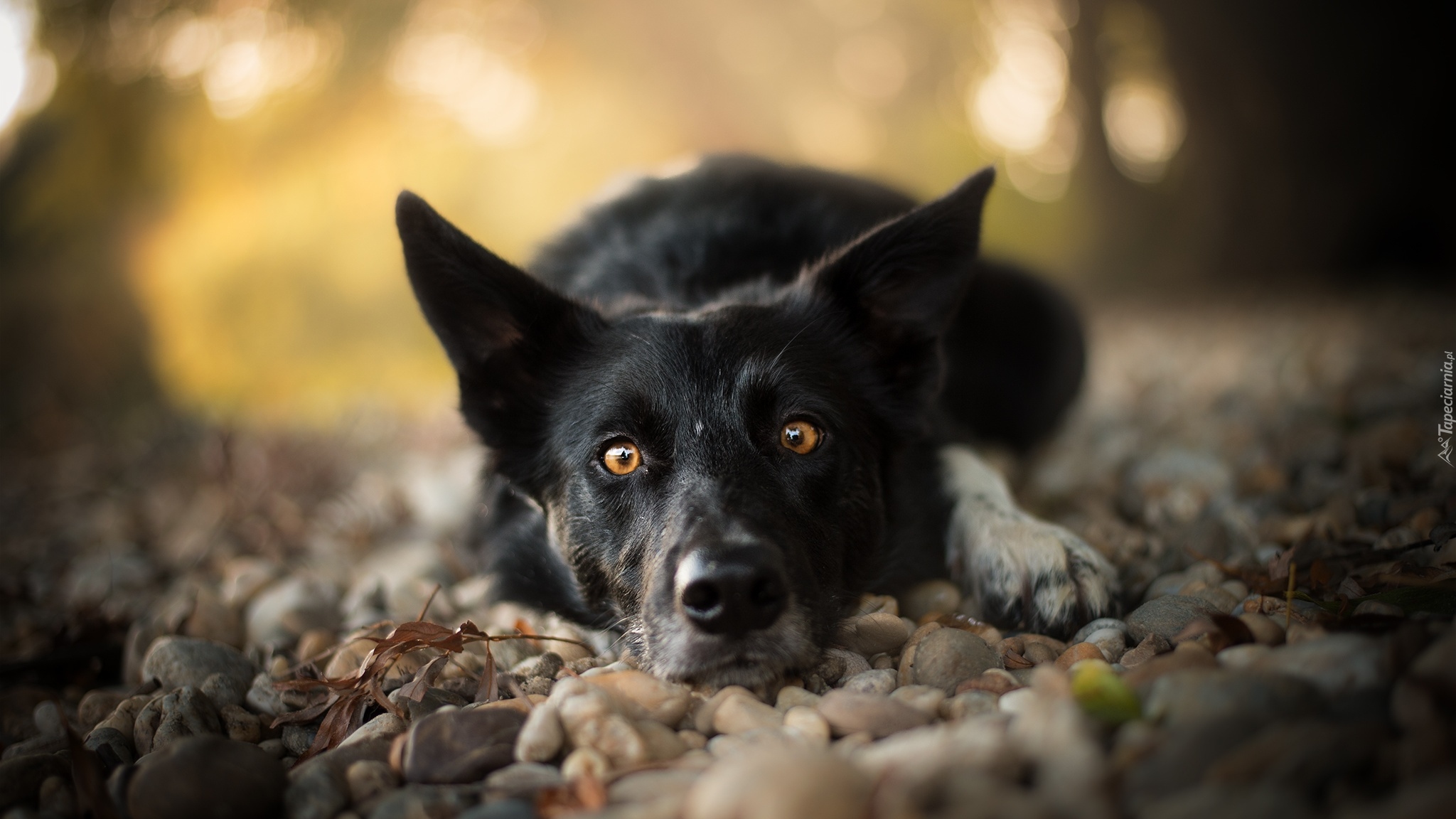 Edytor tapety: Border collie na kamieniach