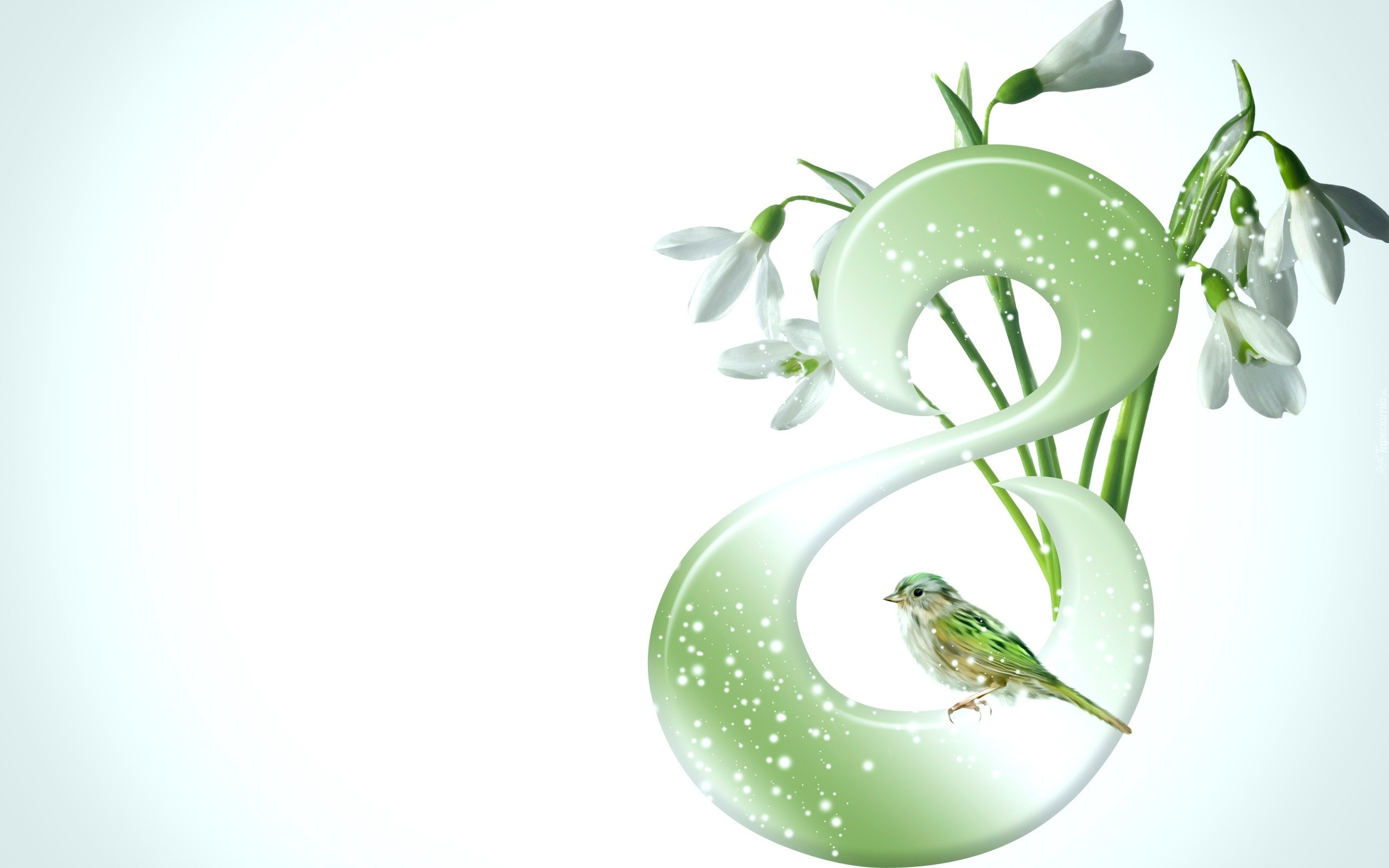 Edytor tapety: Przebiśniegi z ptaszkiem na ósemce