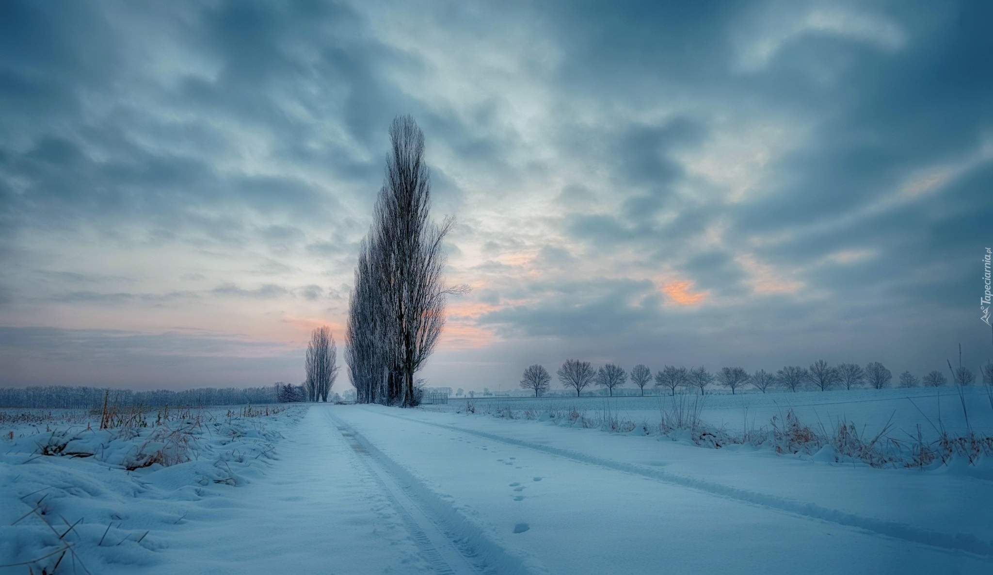Edytor tapety: Topole przy zaśnieżonej drodze