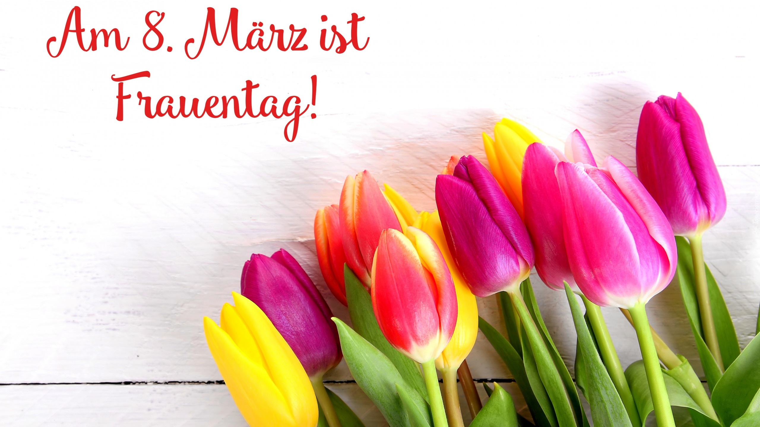Edytor tapety: Tulipany na Dzień Kobiet z napisem na deskach