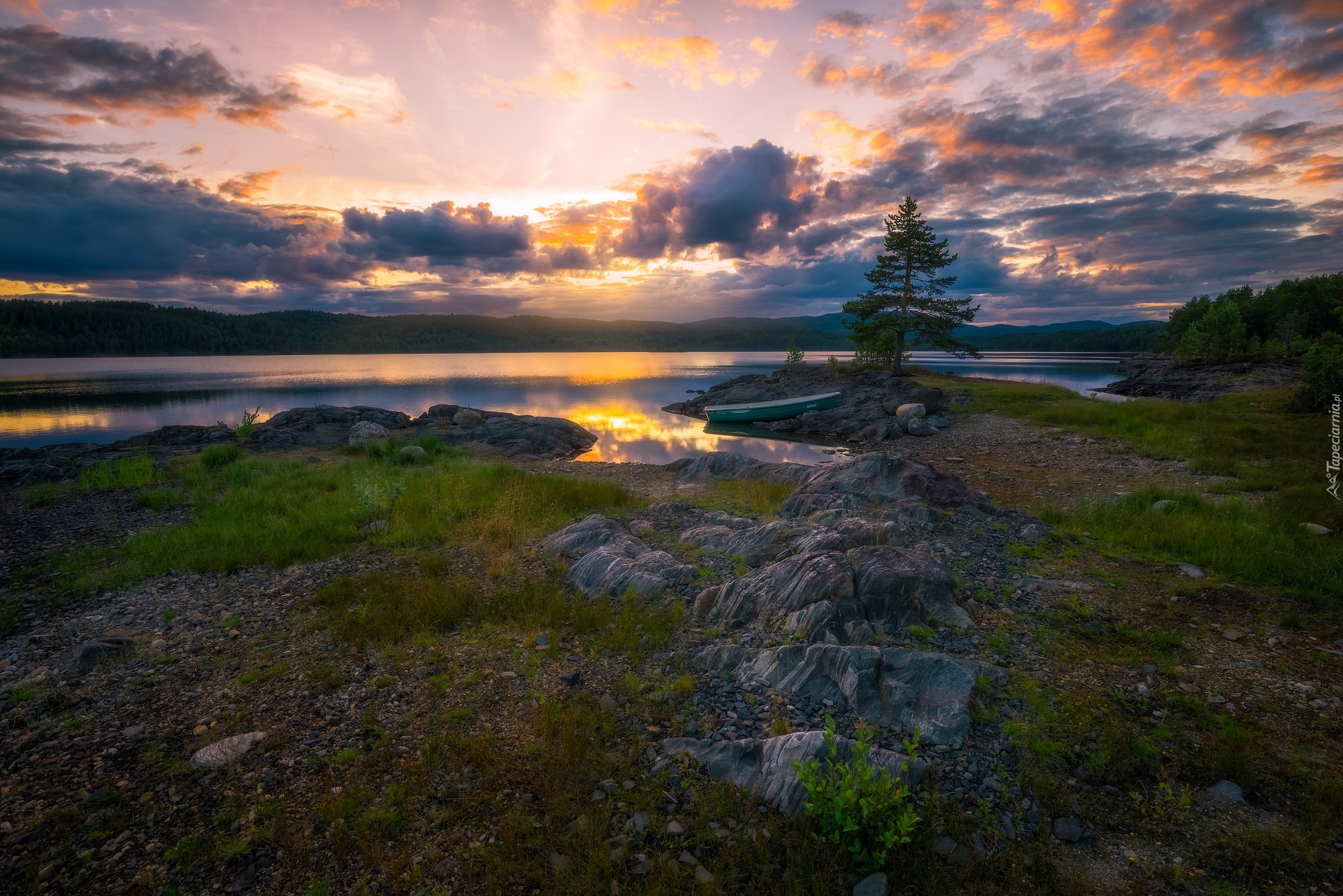 Edytor tapety: Zachód słońca nad jeziorem w gminie Ringerike