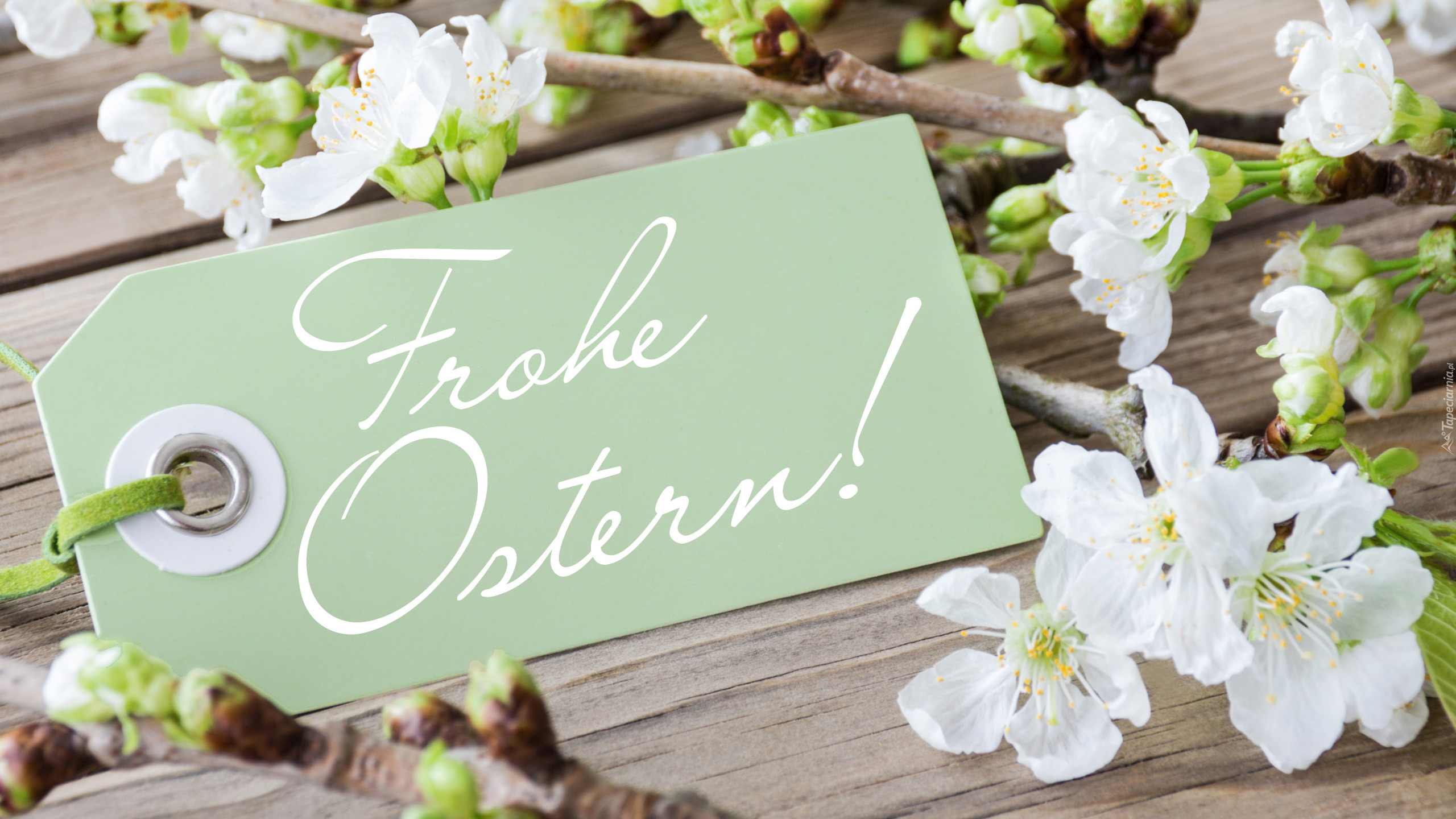 Edytor tapety: Życzenia wielkanocne przy wiosennej gałązce z kwiatami