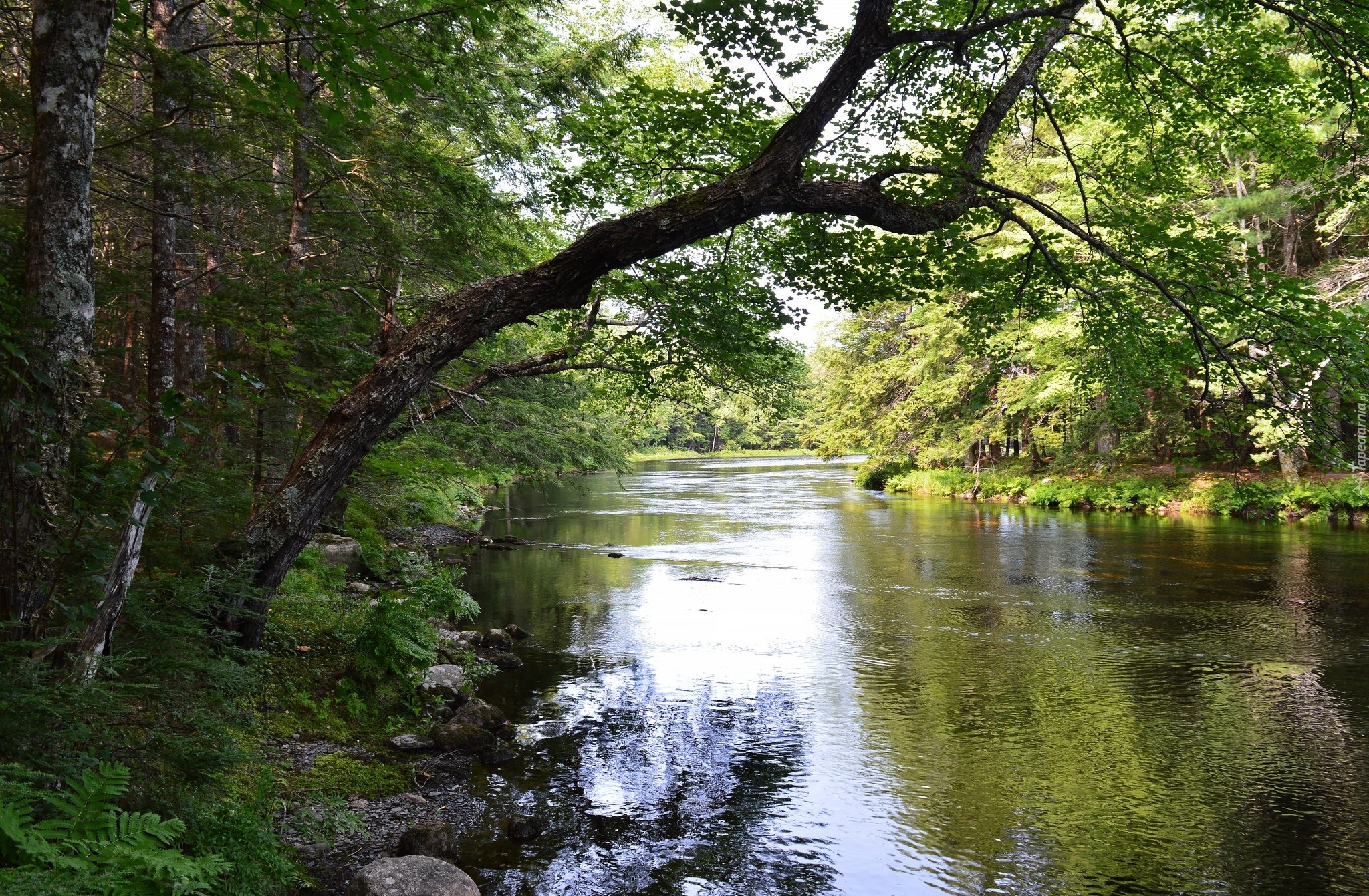 Edytor tapety: Gałęzie drzew zwisające nad rzeką