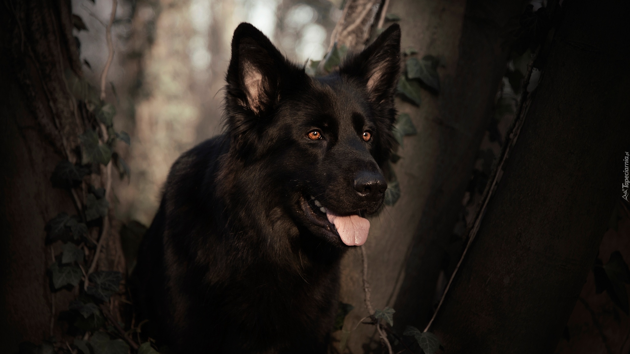 Edytor tapety: Czarny owczarek niemiecki z wystawionym językiem
