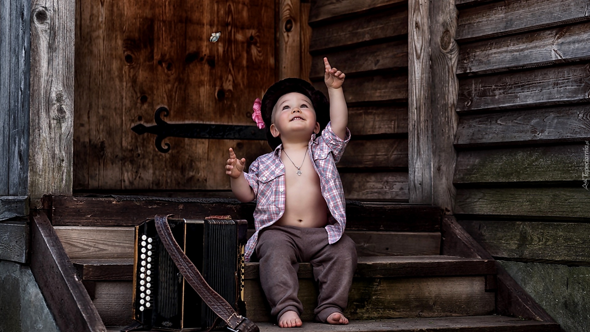 Edytor tapety: Wesołe dziecko przy akordeonie