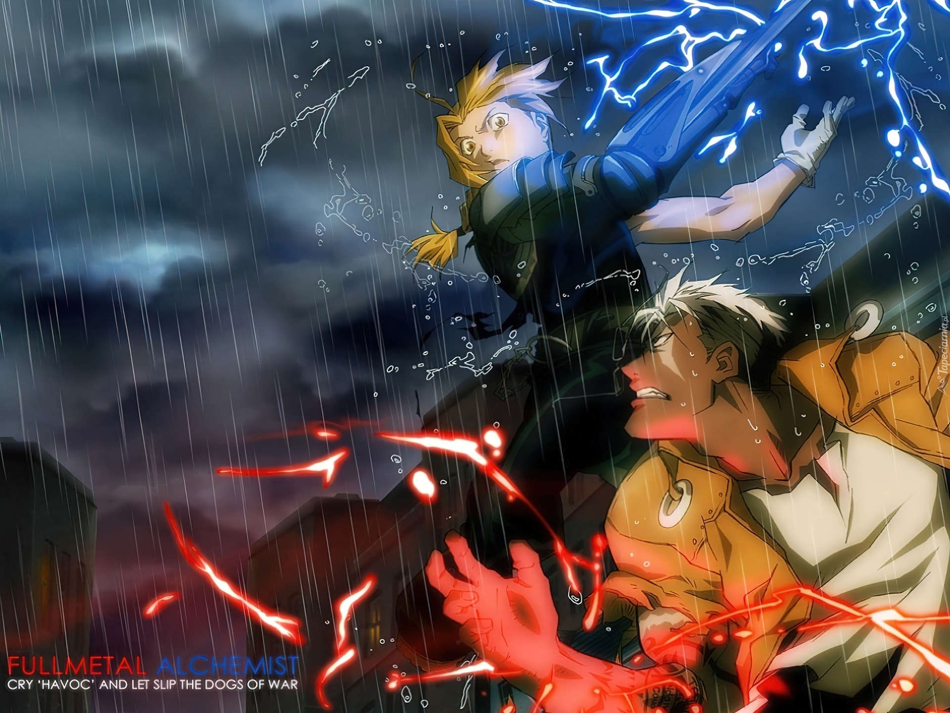 Edytor tapety: Full Metal Alchemist, ludzie, walka, deszcz