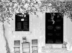 Edytor tapety: Stolik z krzesłami pod okiennicami