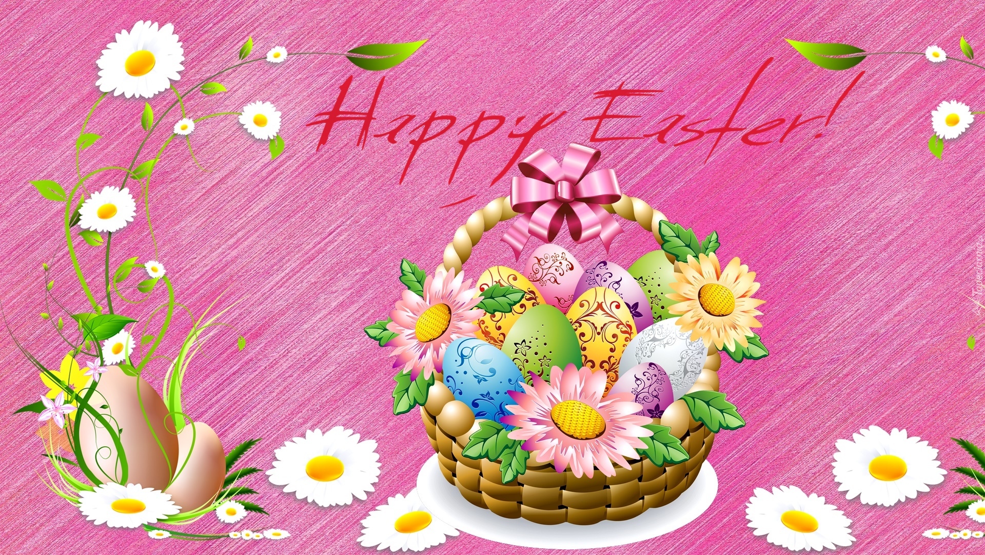 Edytor tapety: Kosz pisanek i życzenia wielkanocne