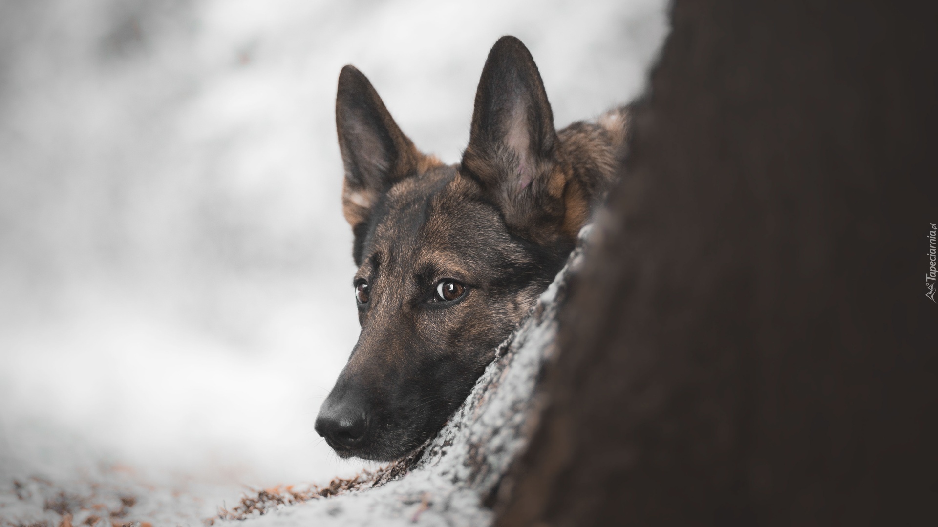 Edytor tapety: Owczarek niemiecki za drzewem