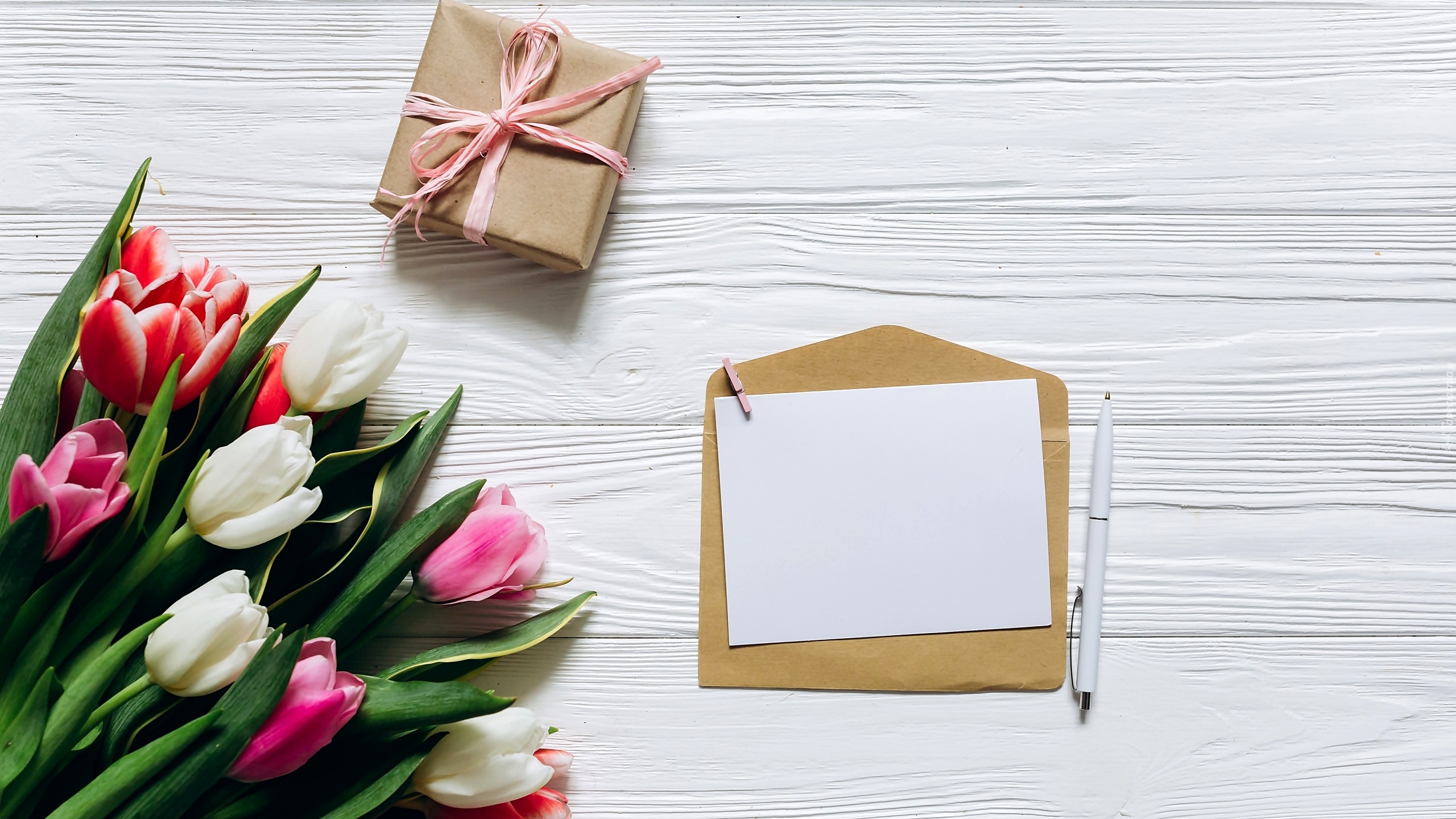 Edytor tapety: Tulipany z prezentem