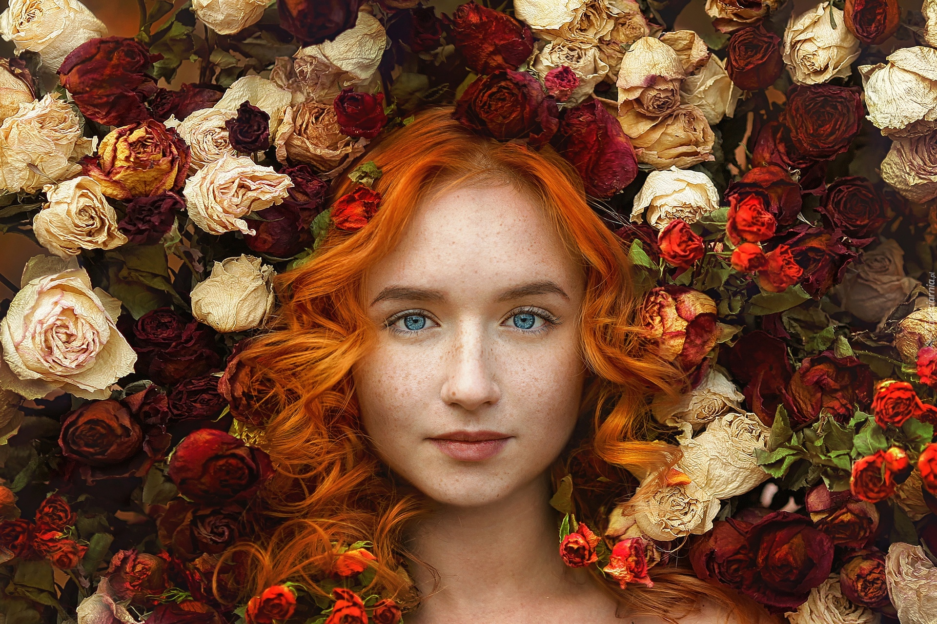 Edytor tapety: Rudowłosa dziewczyna w kwiatach
