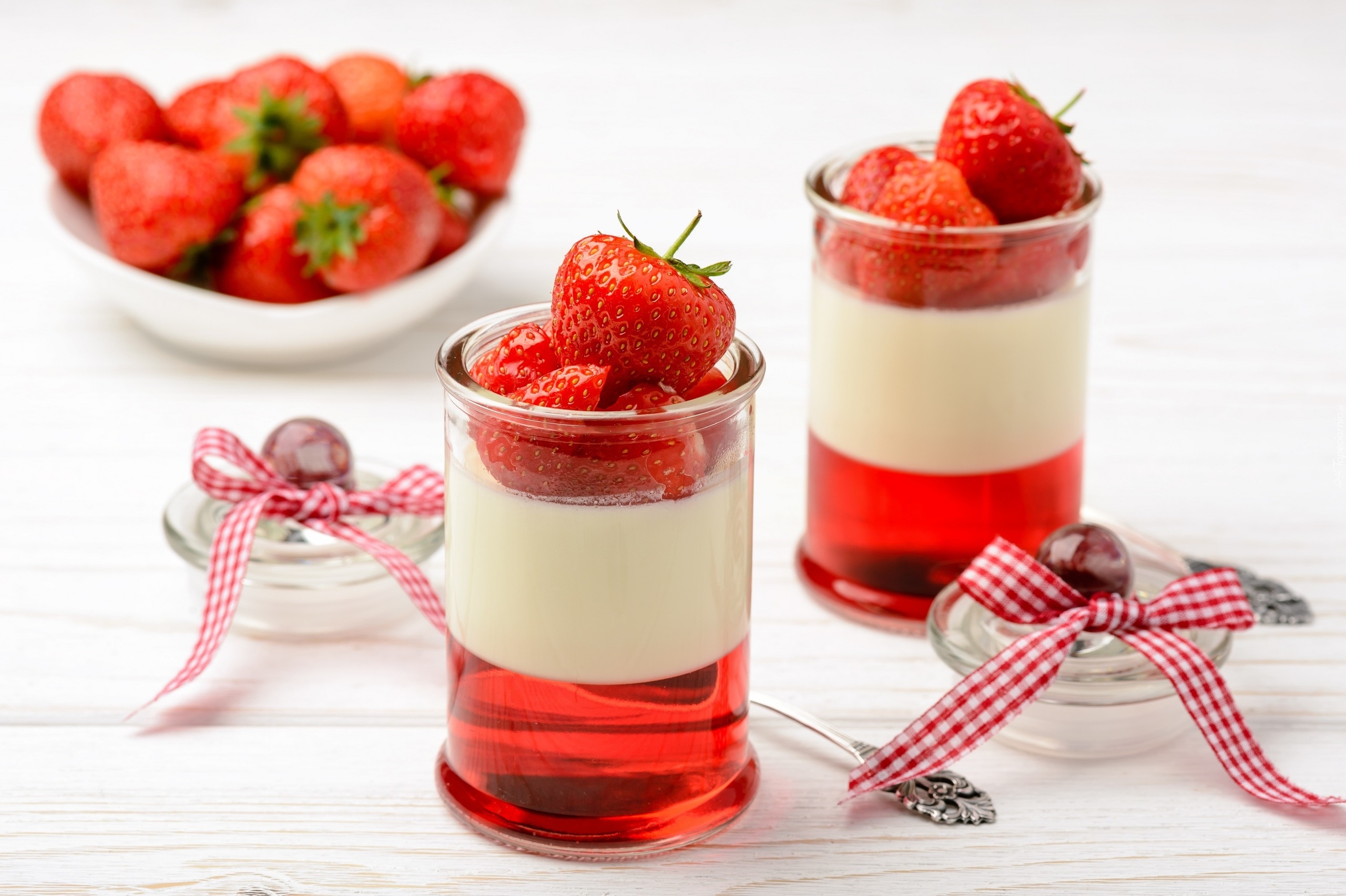 Edytor tapety: Panna cotta w szklance z truskawkami