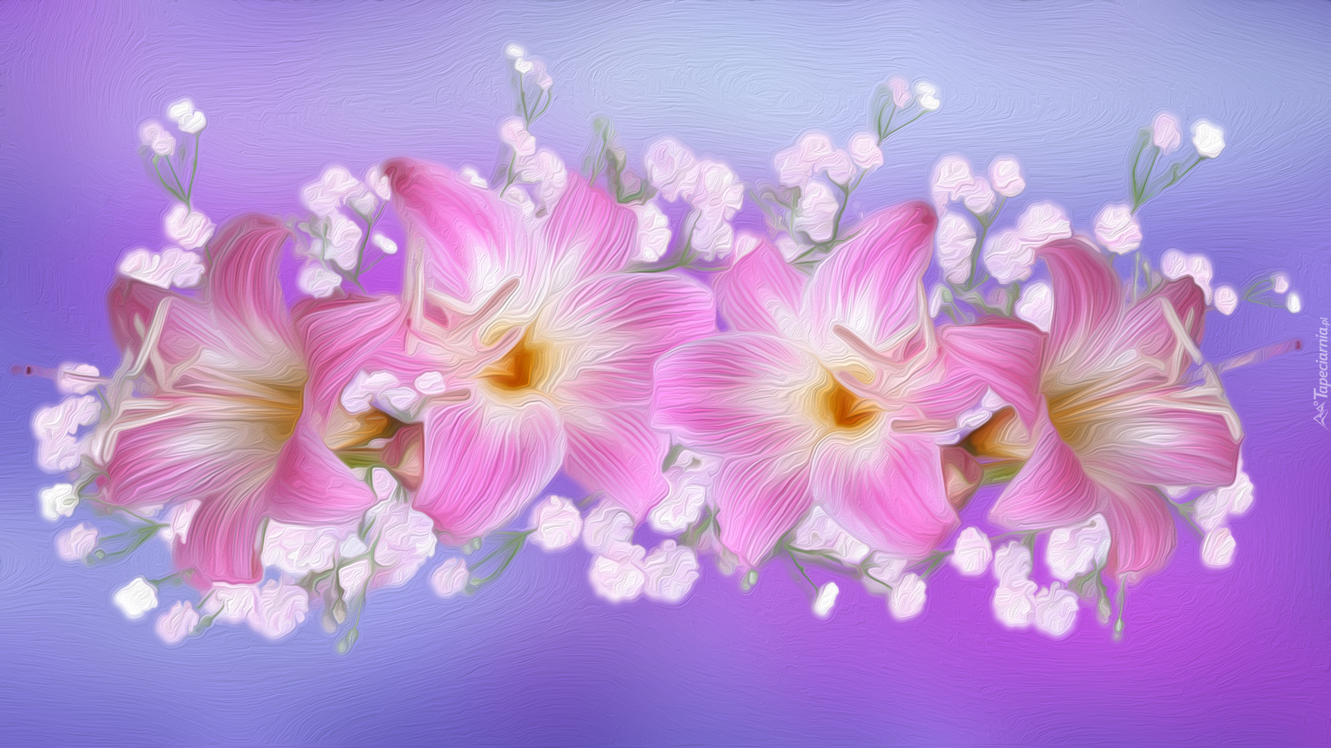 Edytor tapety: Różowe lilie w grafice
