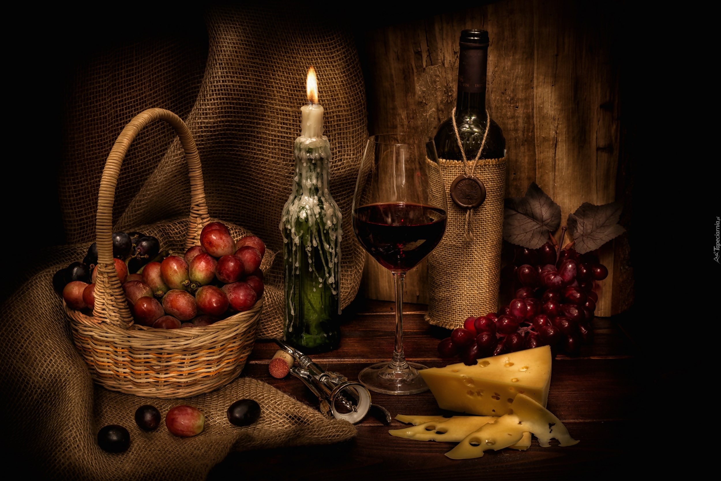 Edytor tapety: Kompozycja z butelką wina i świeczką