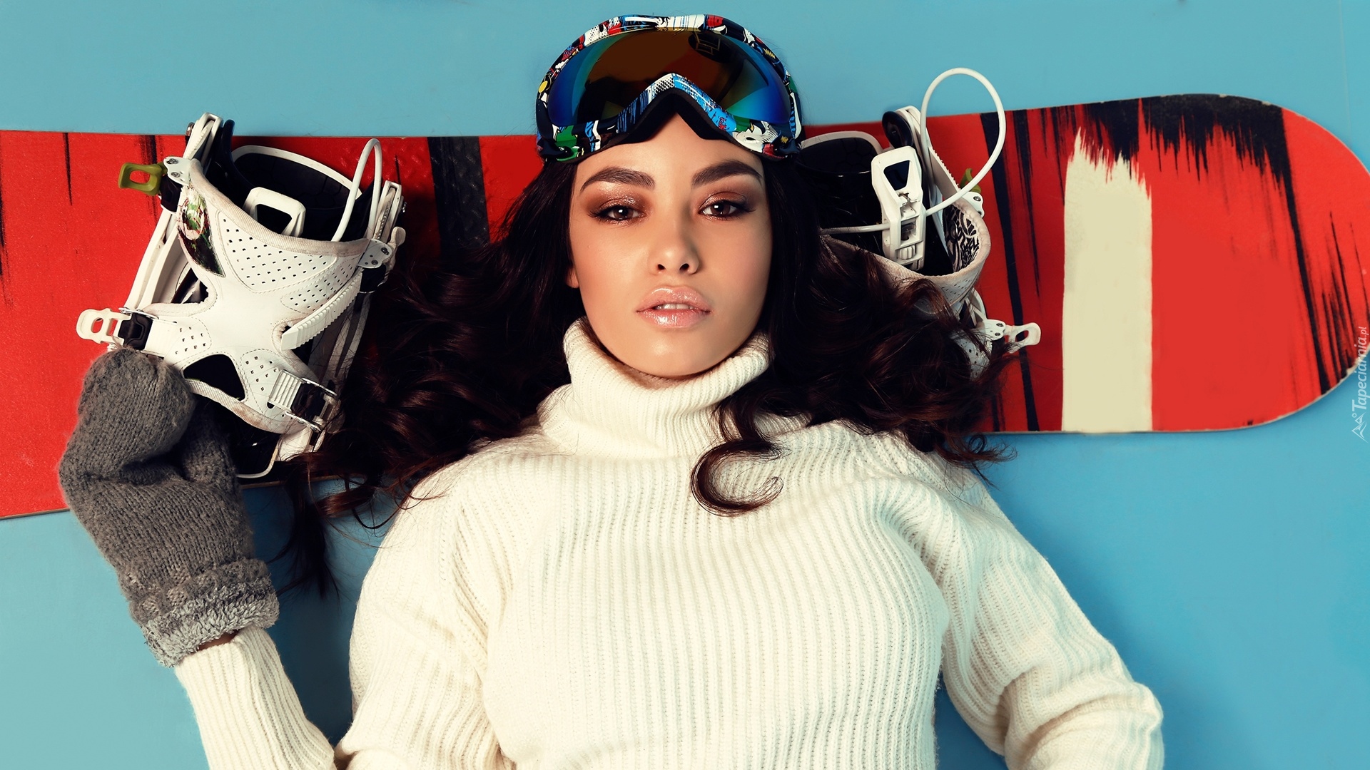 Edytor tapety: Dziewczyna z deską snowboardową