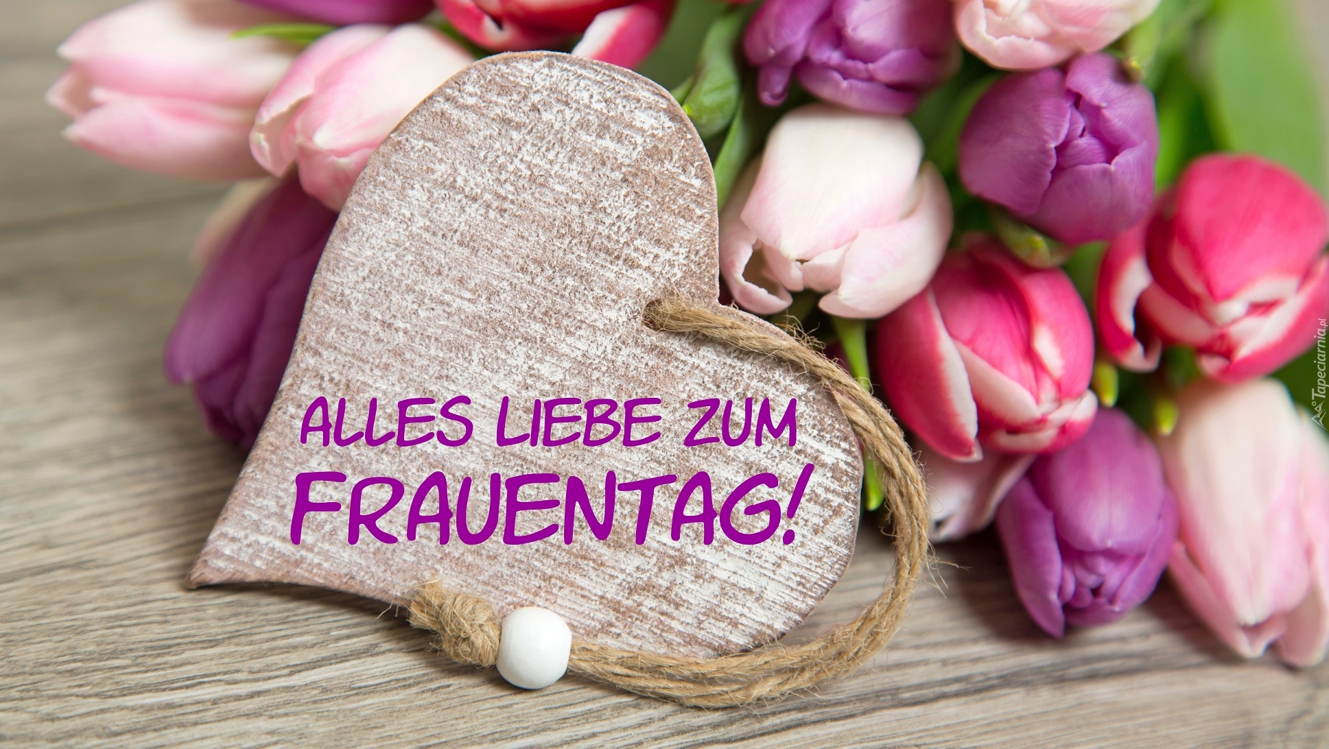 Edytor tapety: Serce na sznurku obok bukietu tulipanów