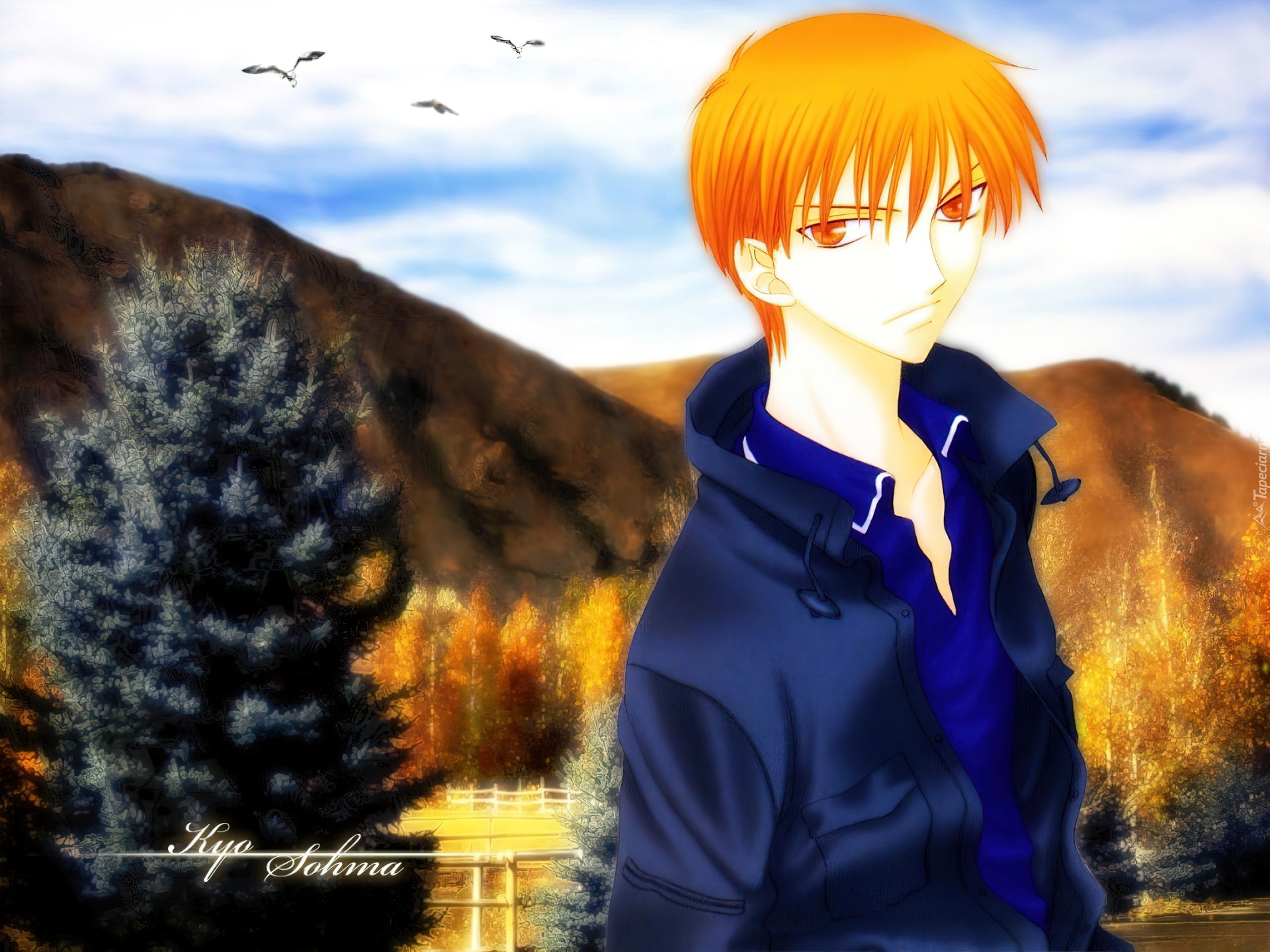 Edytor tapety: jezioro, Fruits Basket, postać, drzewo, góry
