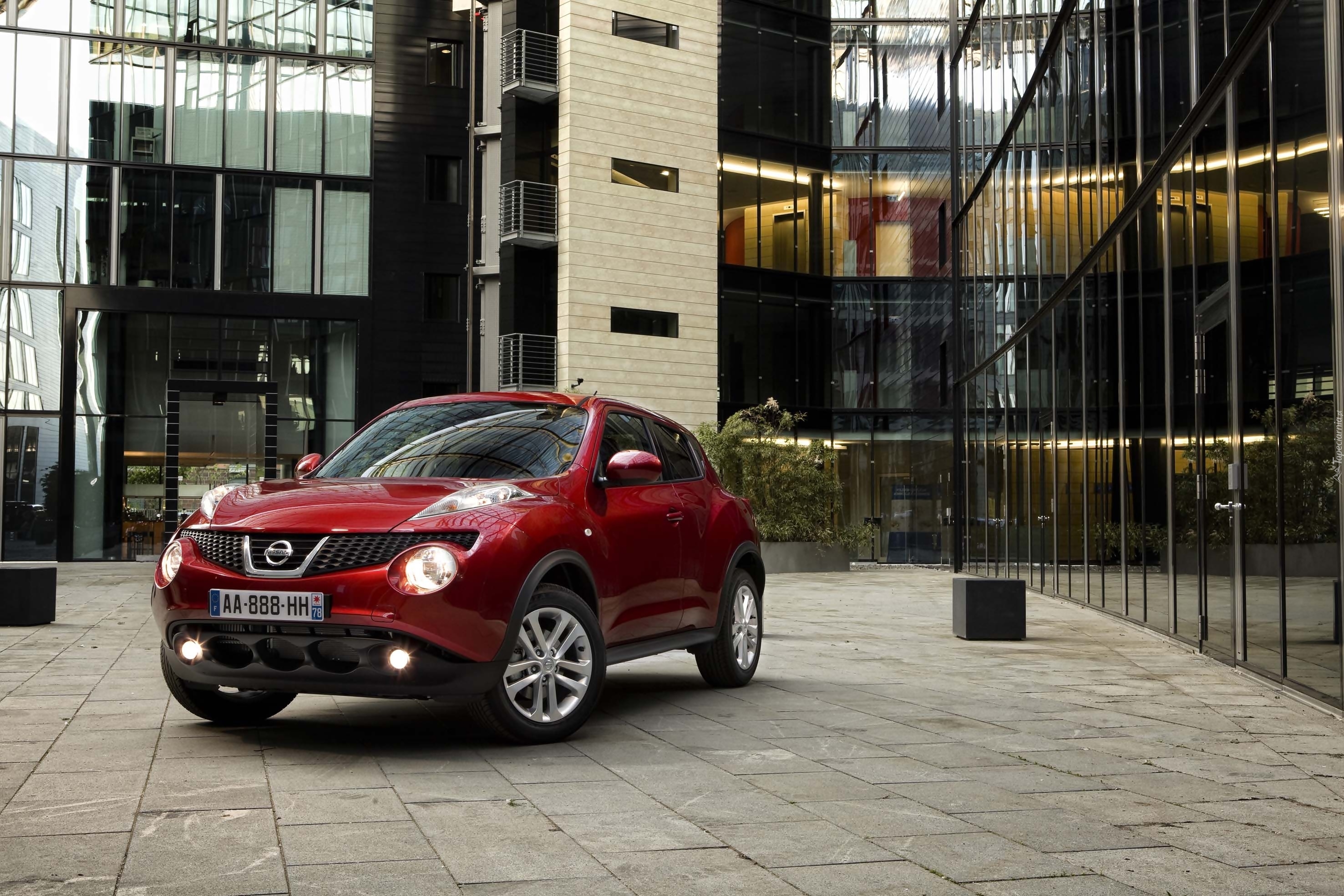 Edytor tapety: Nissan Juke na tle oszklonych budynków