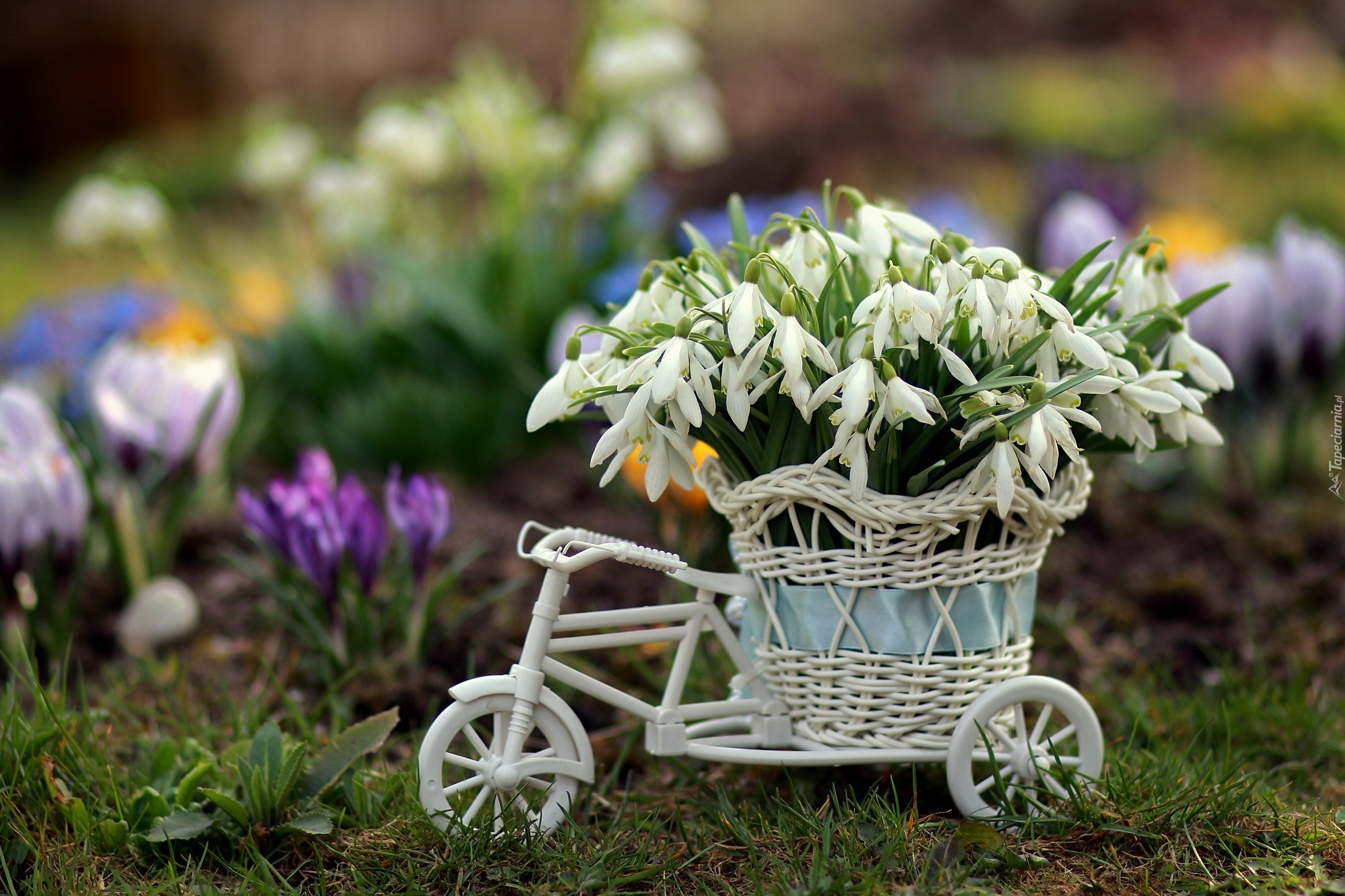 Edytor tapety: Pęk przebiśniegów w koszyku