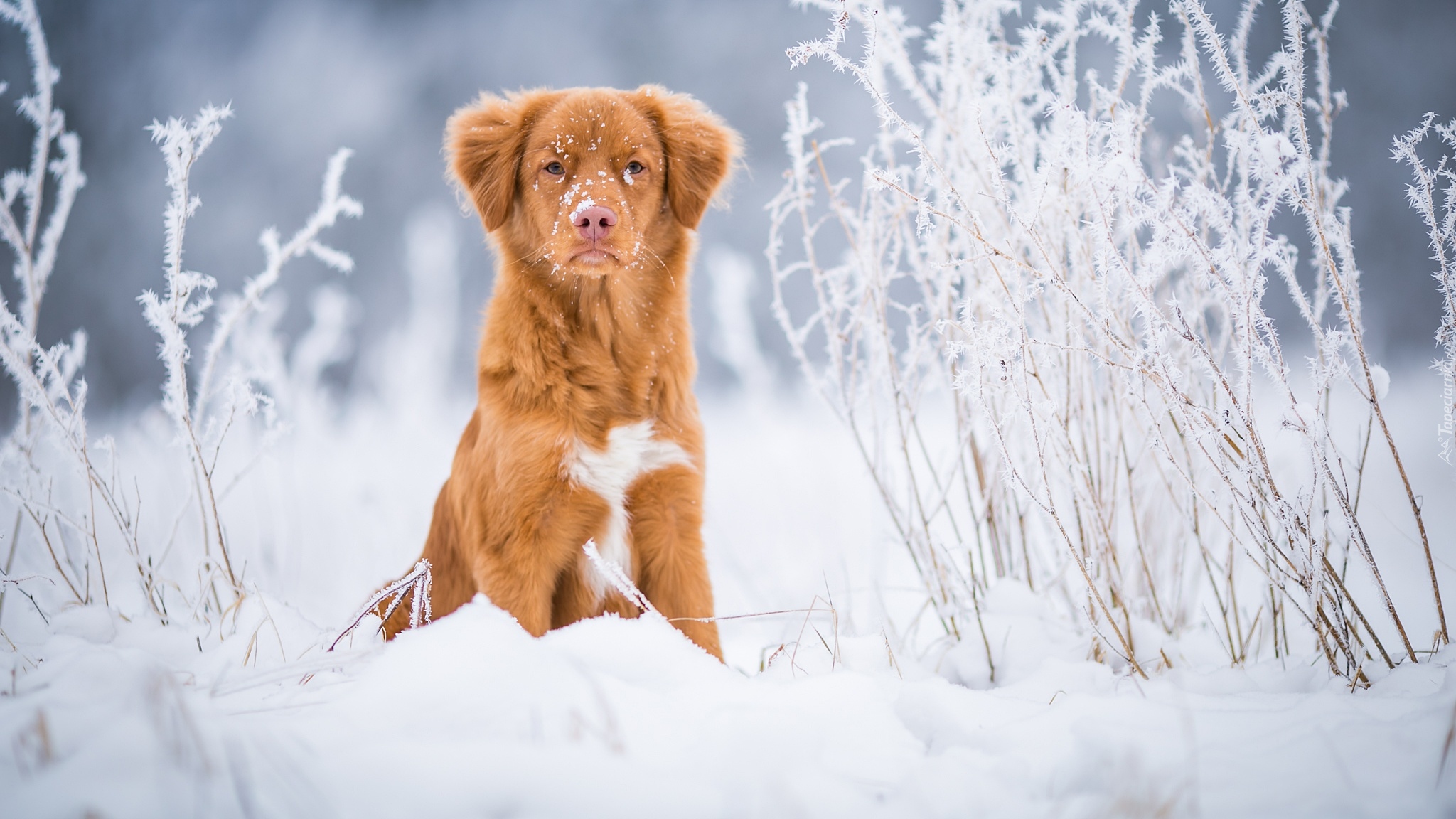 Edytor tapety: Retriever z Nowej Szkocji w śniegu