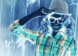 Edytor tapety: Blondynka w okularach i kapeluszu